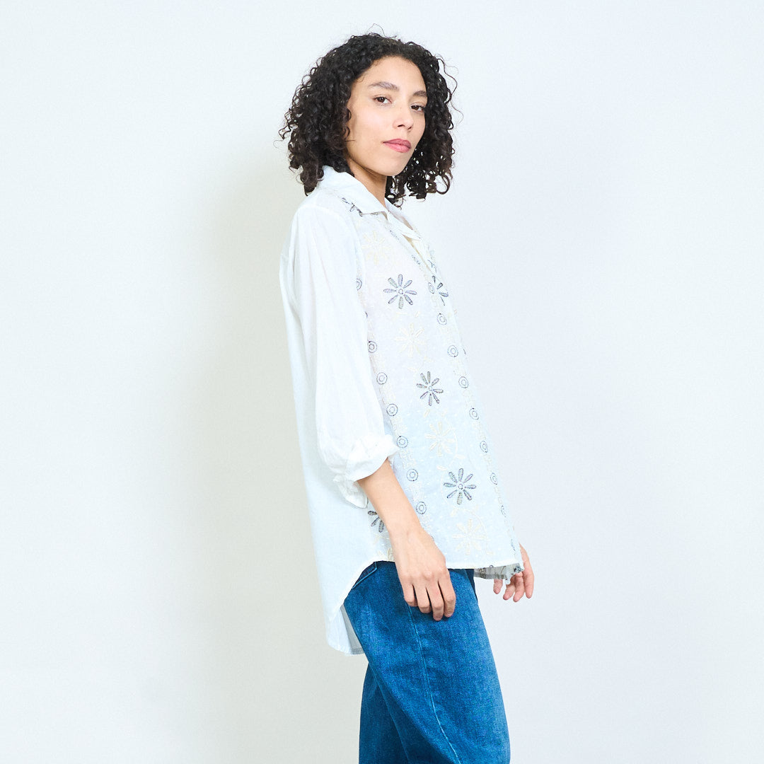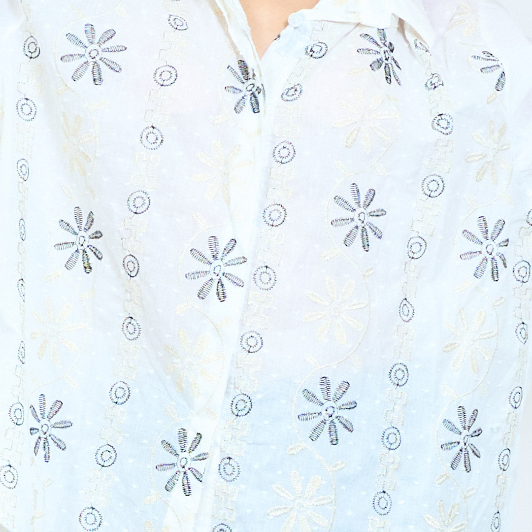 بلوزة قميص بأزرار أمامية مطرزة بالزهور للبيع بالجملة
