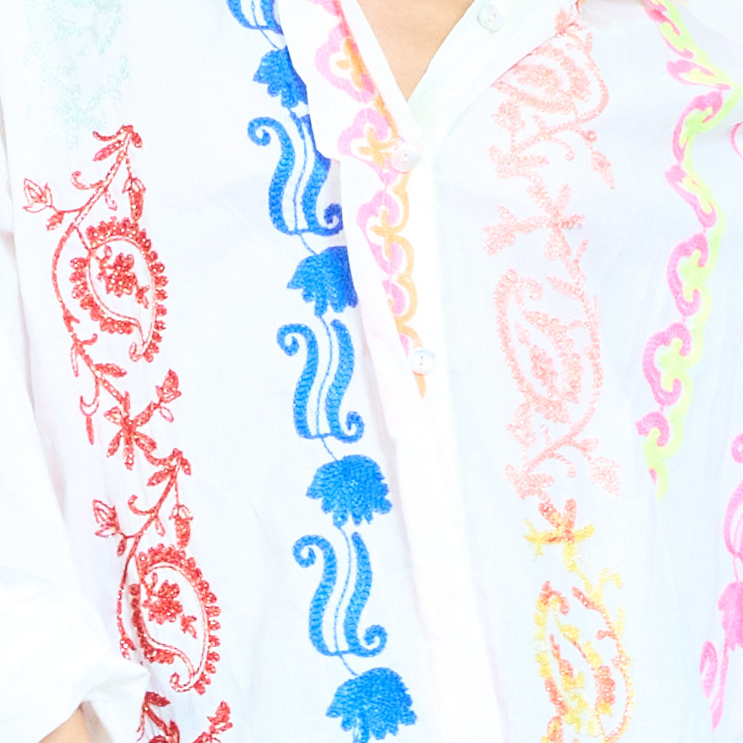 بلوزة قميص بأزرار أمامية مطرزة متعددة الألوان للبيع بالجملة