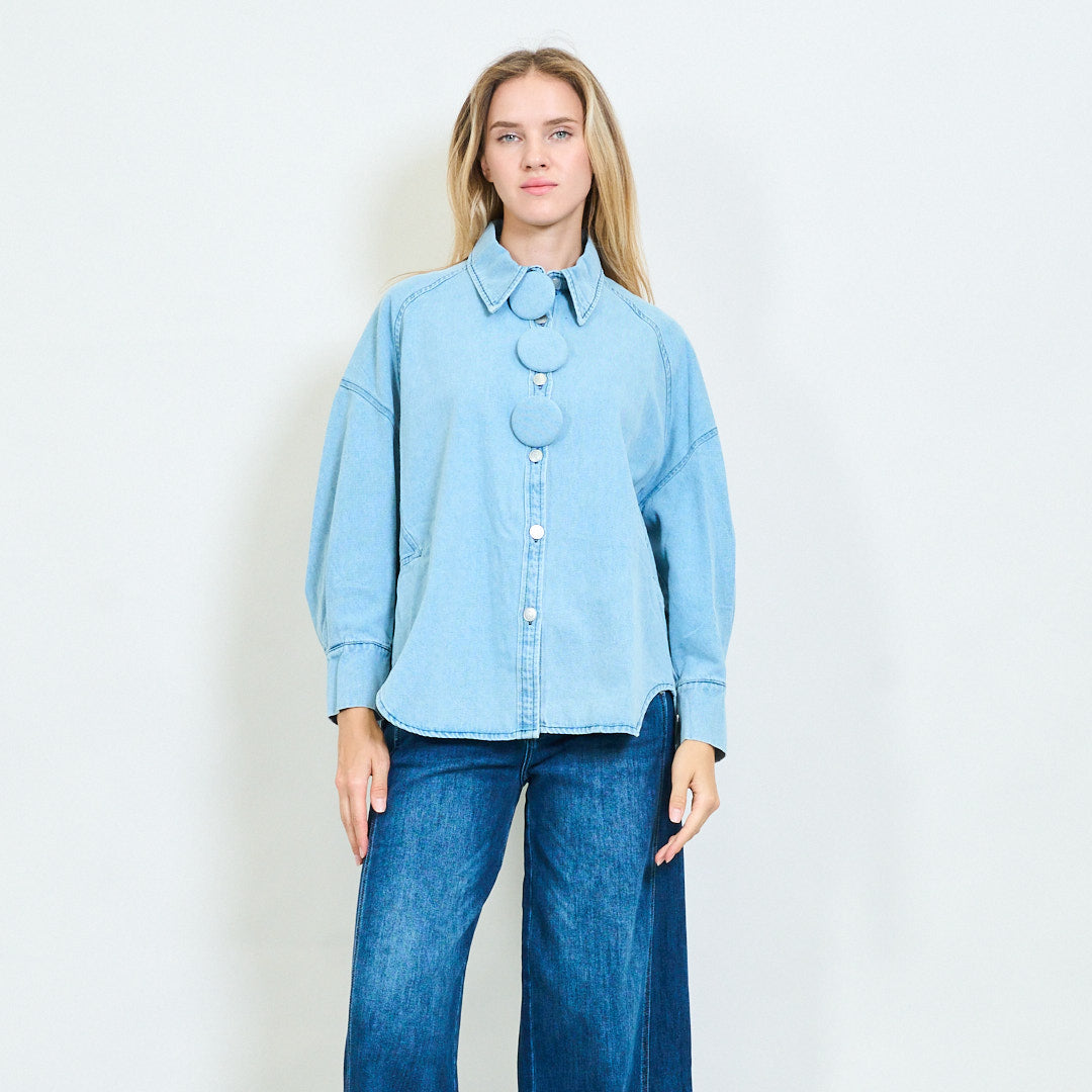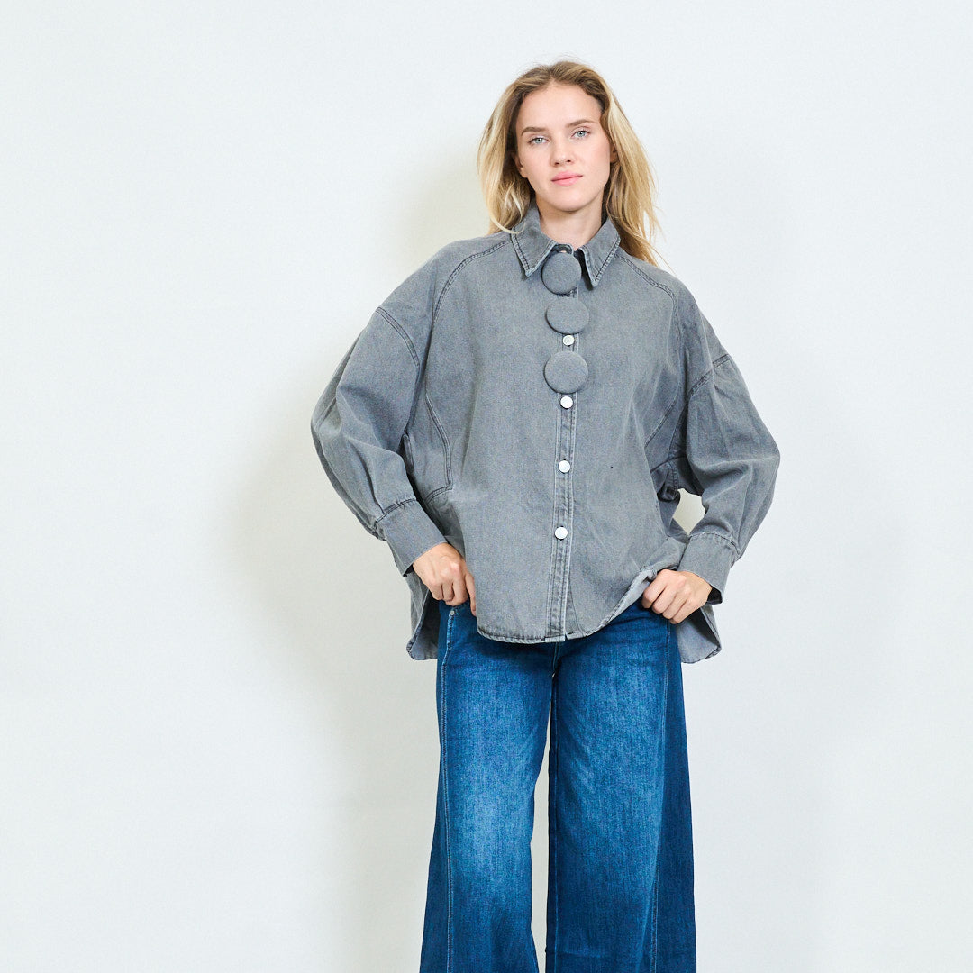 قميص الدنيم ذو الراحة القديمة مع أزرار النسيج ماكسي بالجملة