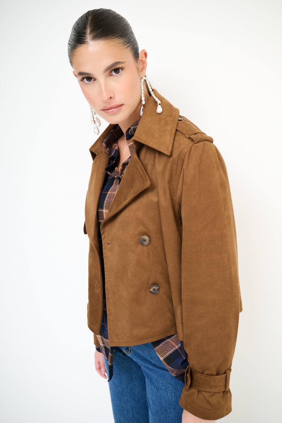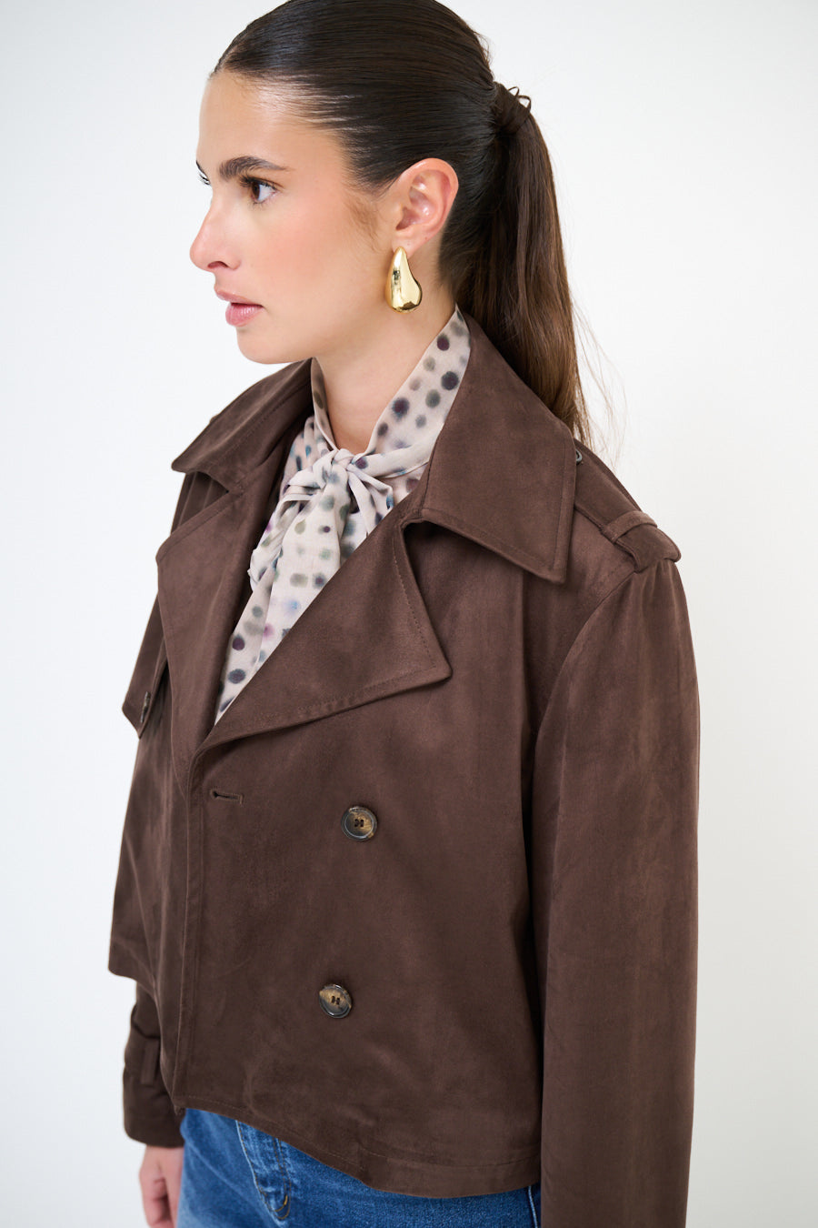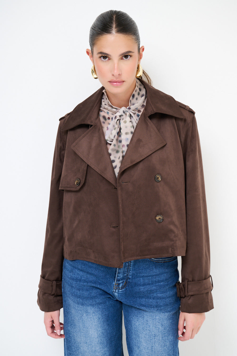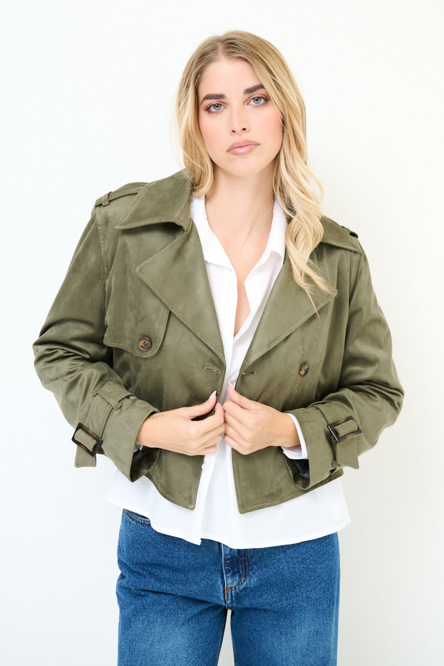 - جبهة مزدوجة الصدر مع زر كلاسيكي تفاصيل