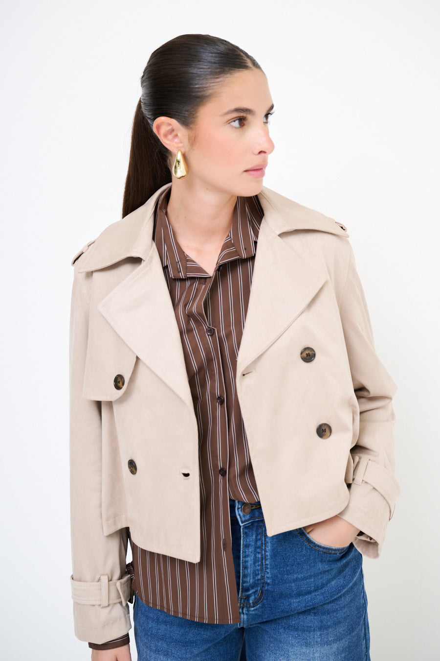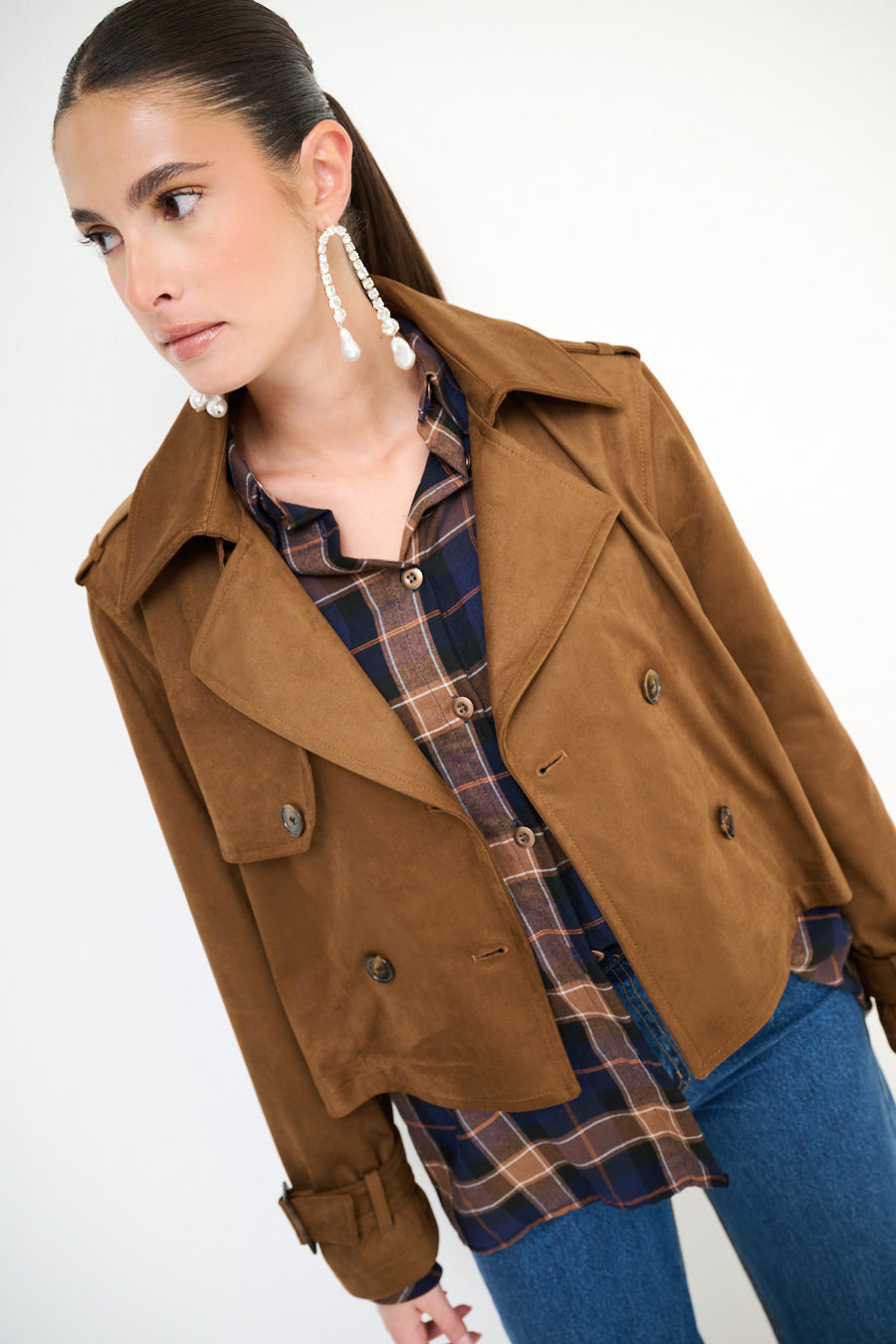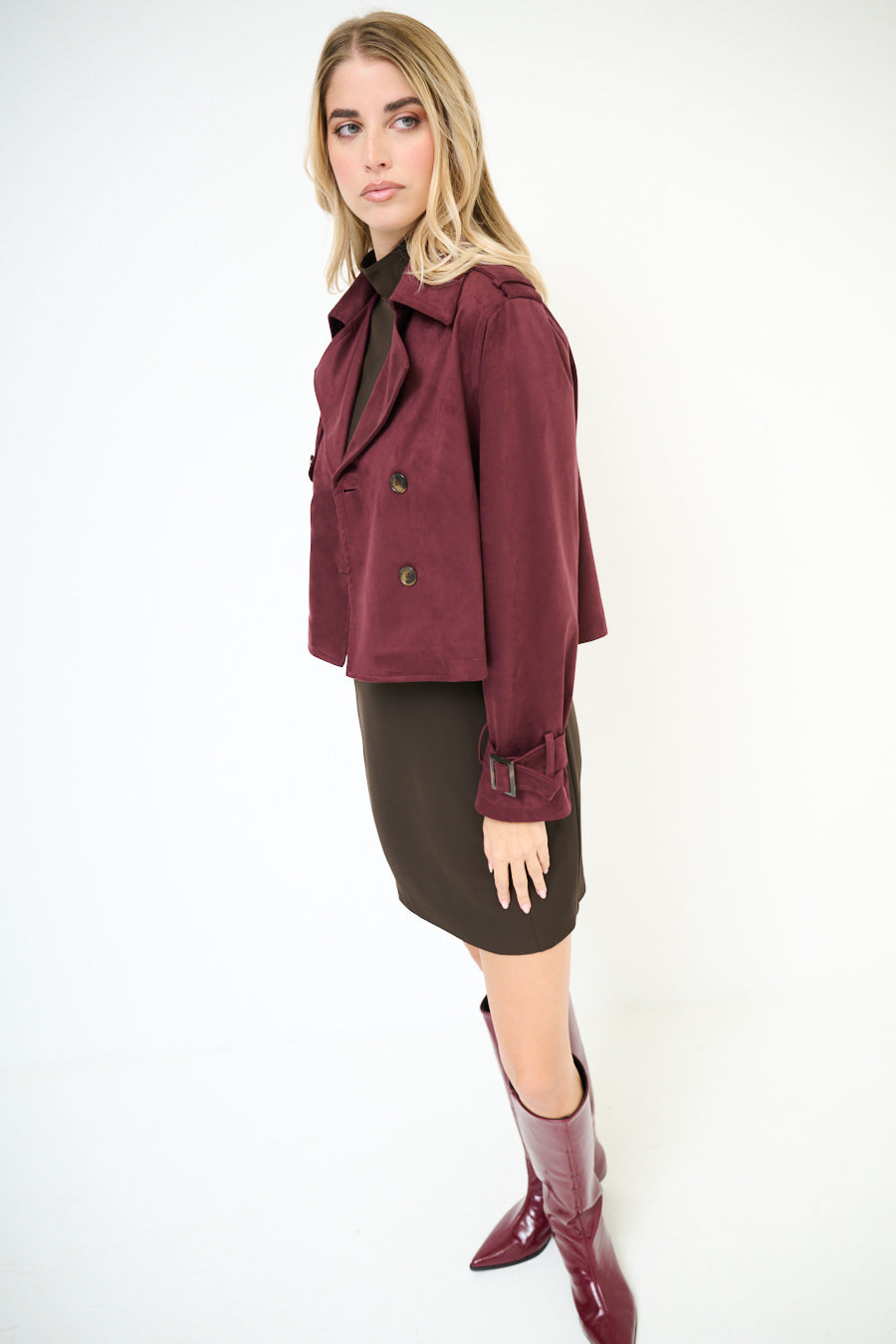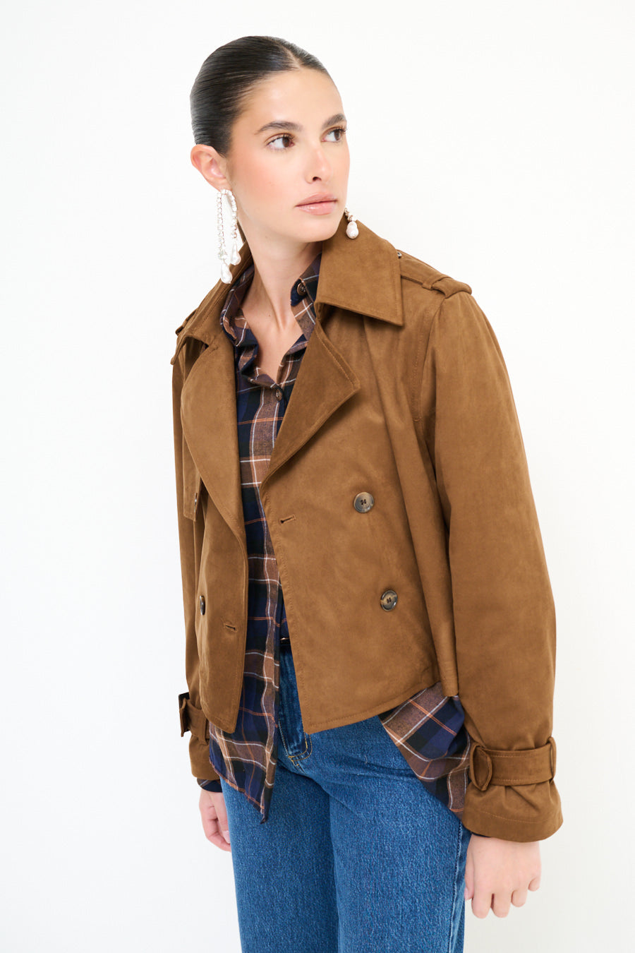 - جبهة مزدوجة الصدر مع زر كلاسيكي تفاصيل