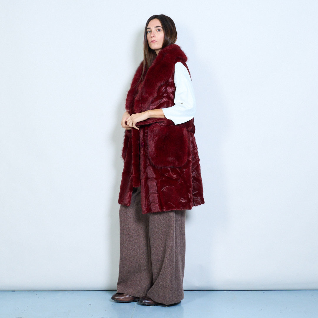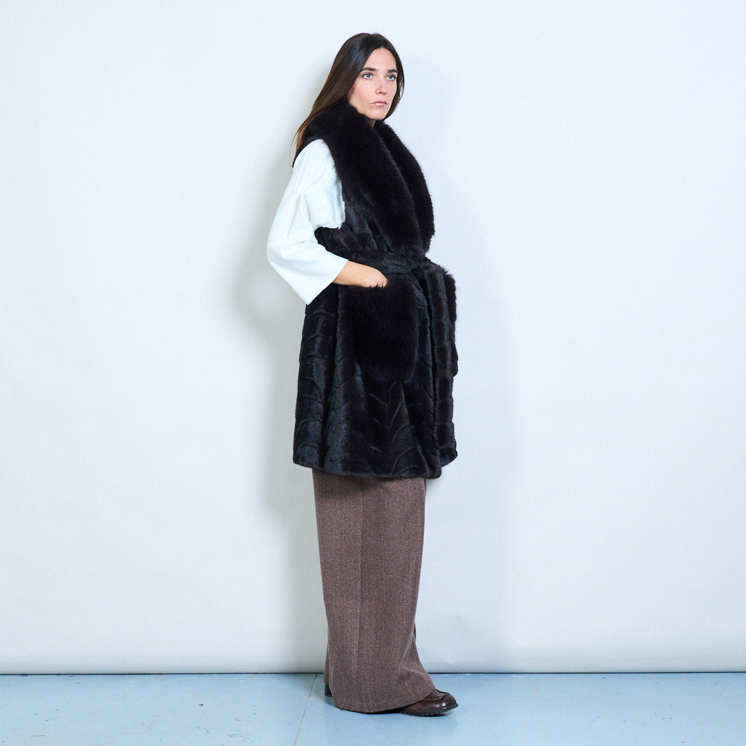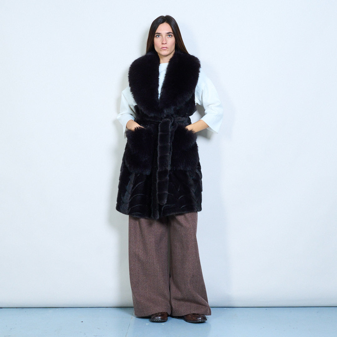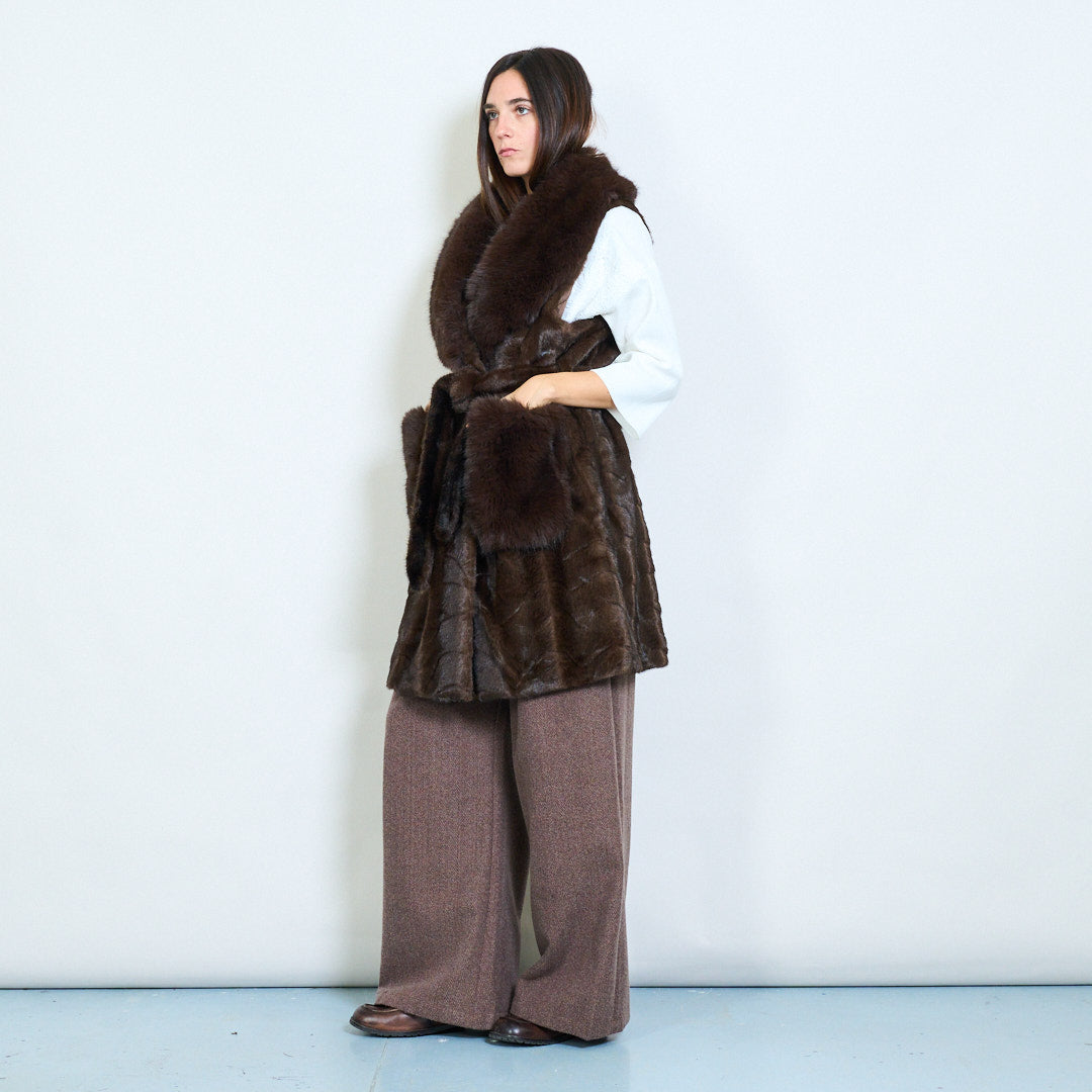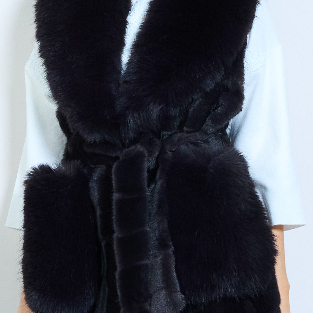 معطف شتوي بلا أكمام بحزام من الفرو الصناعي بالجملة