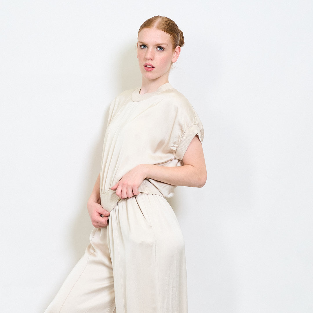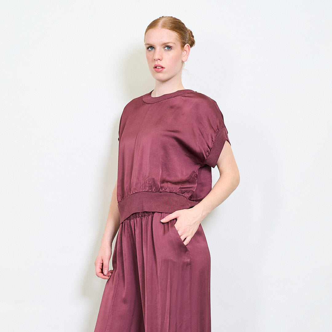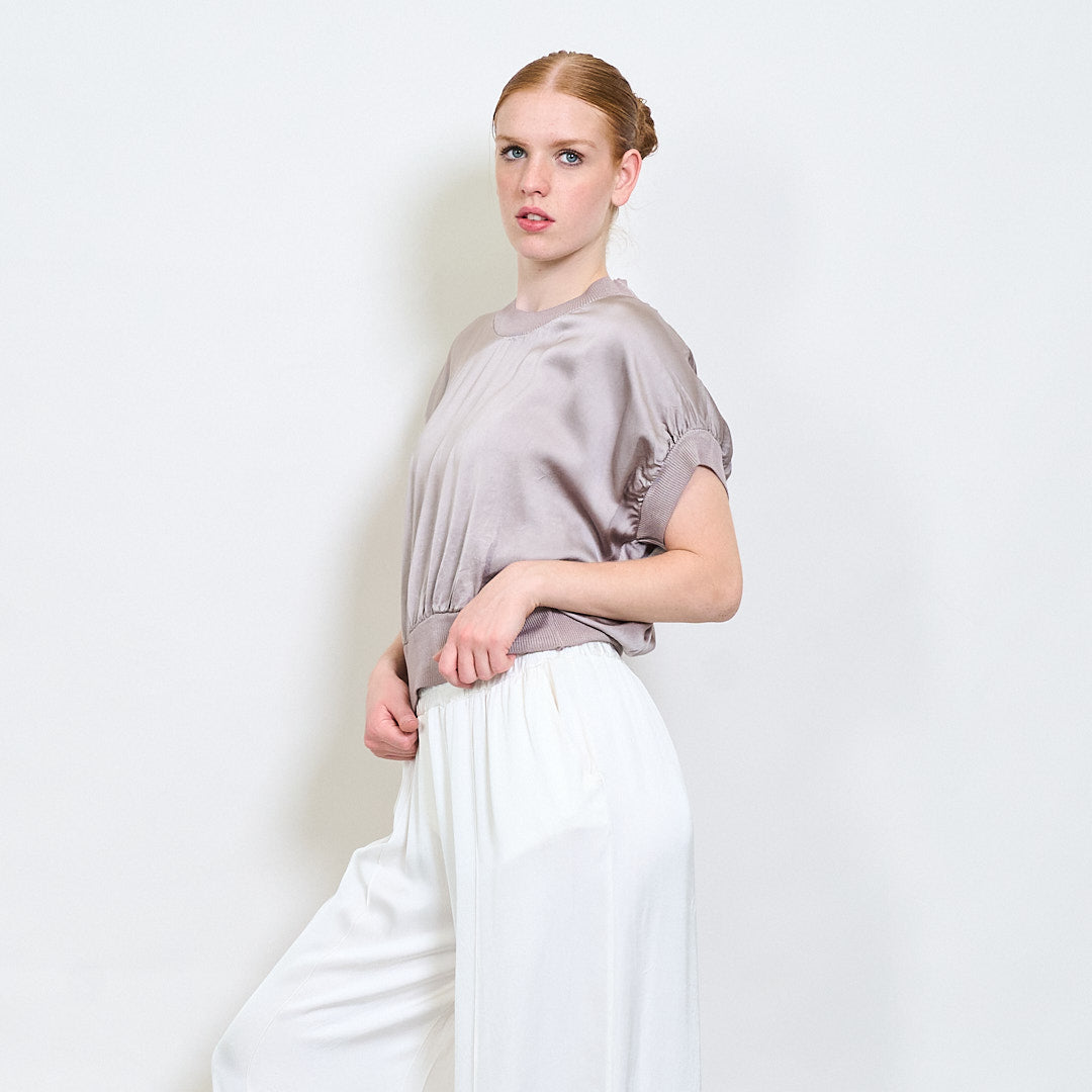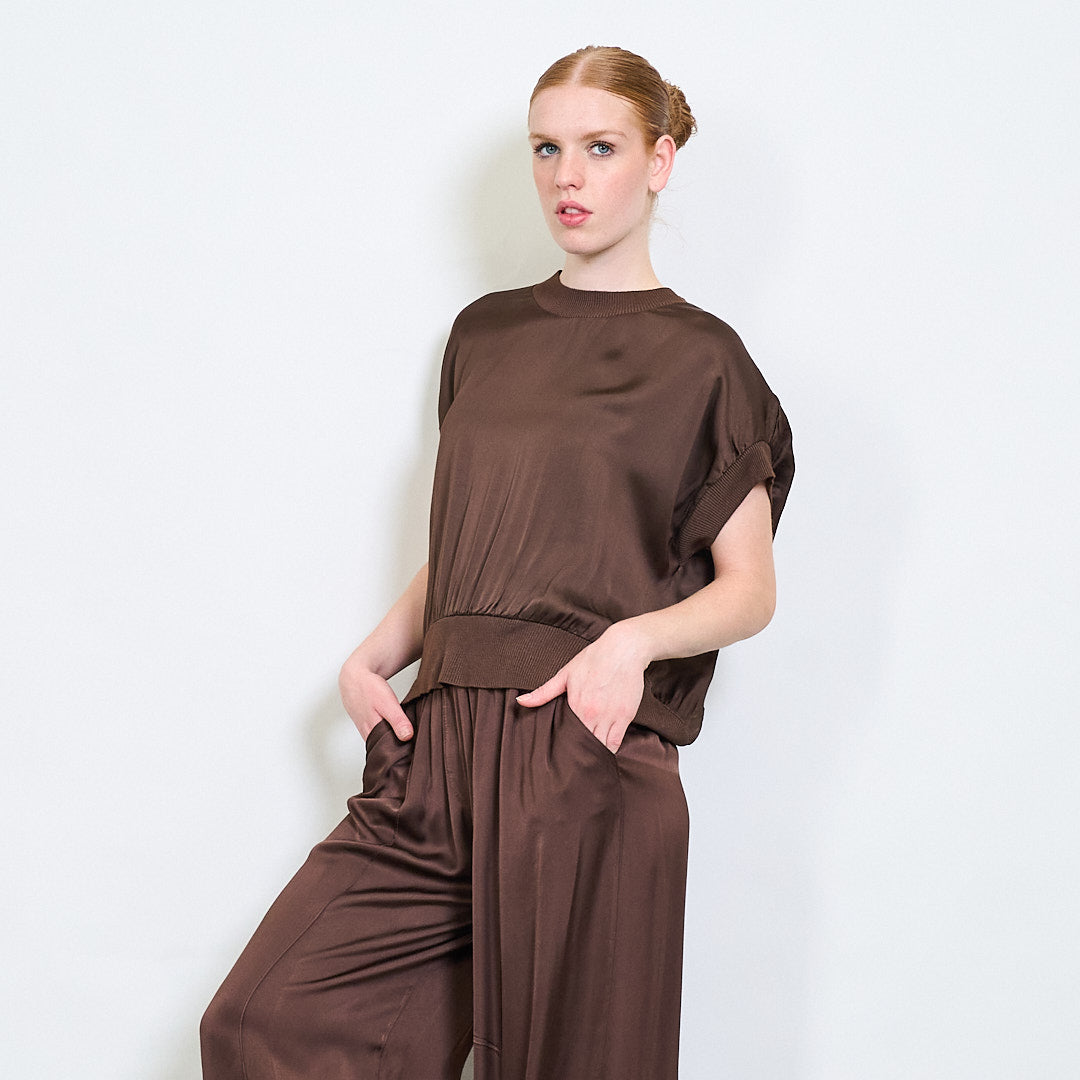 تي شيرت الساتان فضفاضة مع تقليم متماسكة بالجملة
