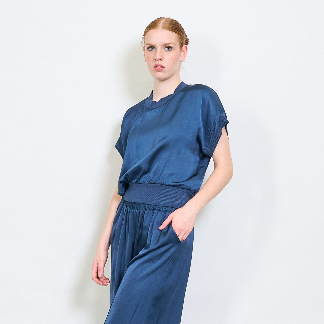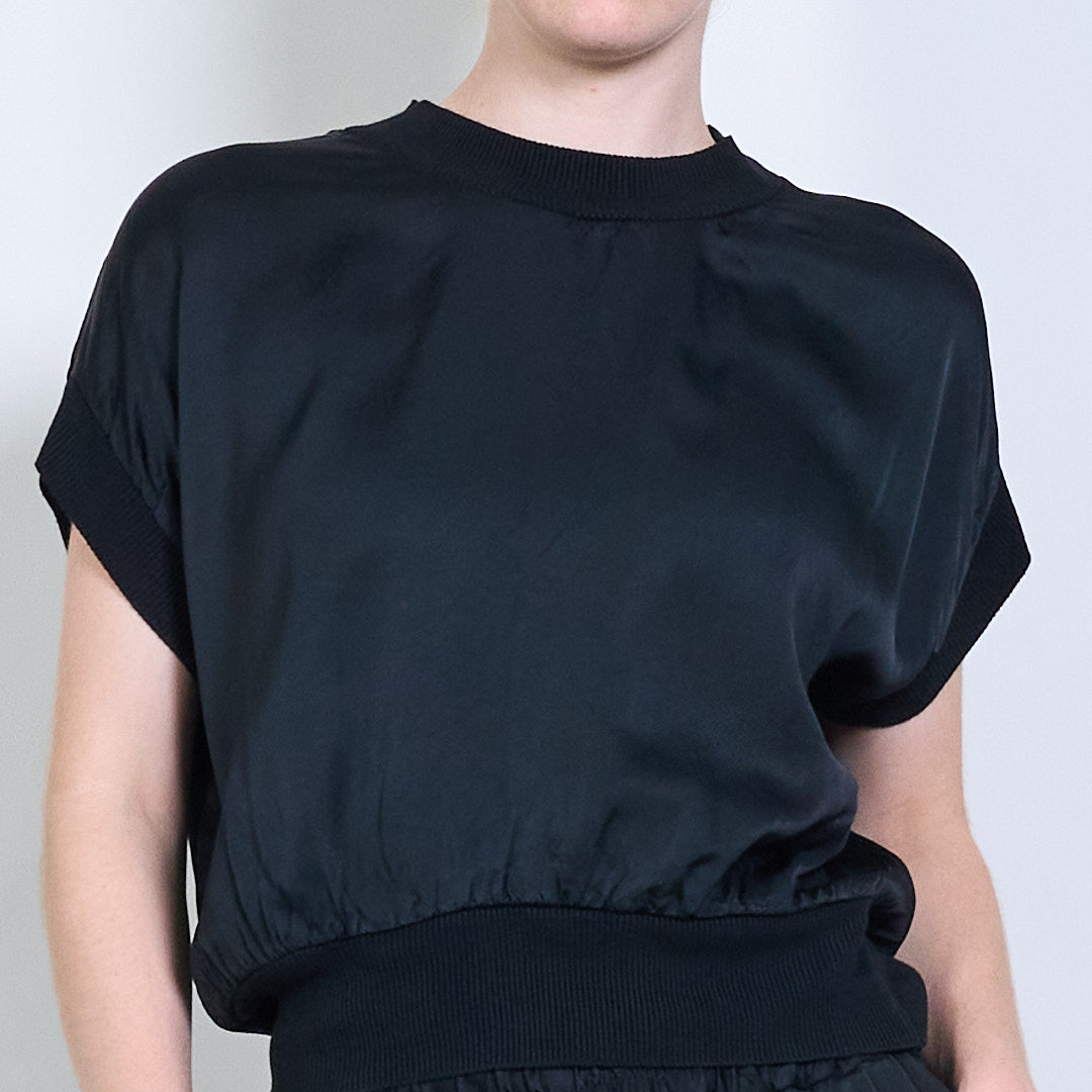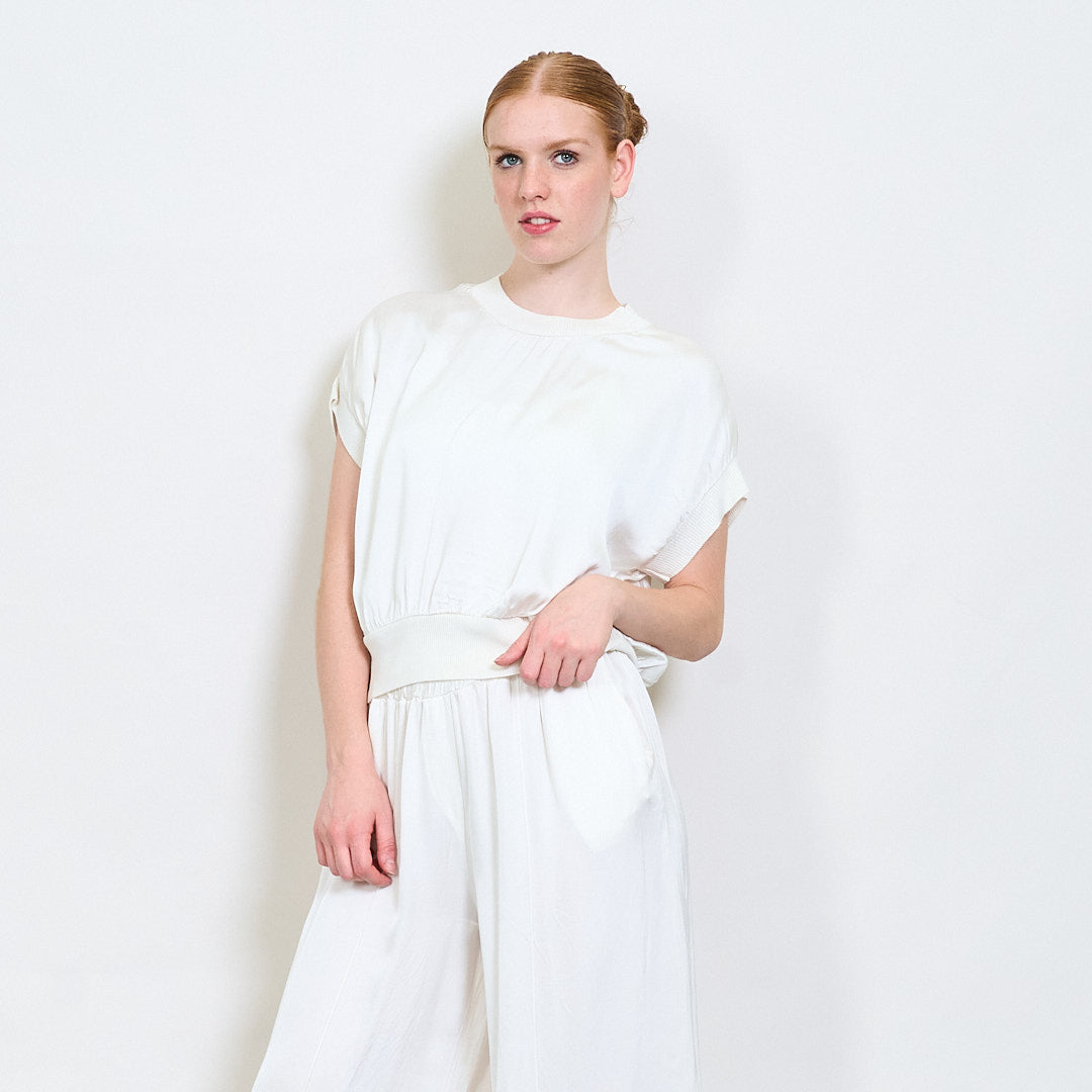 تي شيرت الساتان فضفاضة مع تقليم متماسكة بالجملة