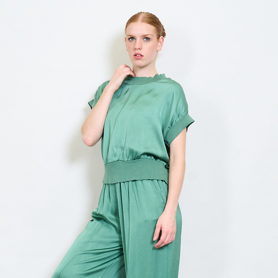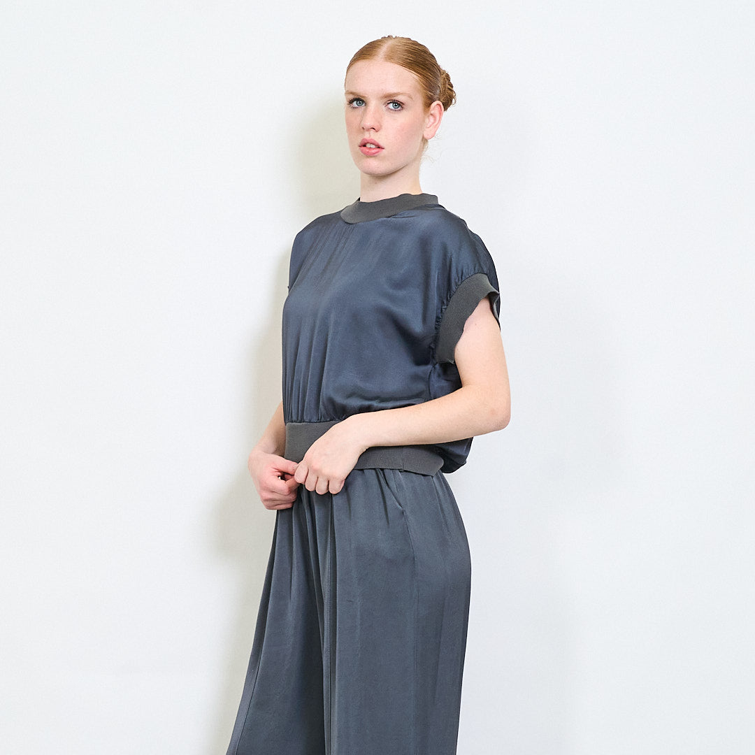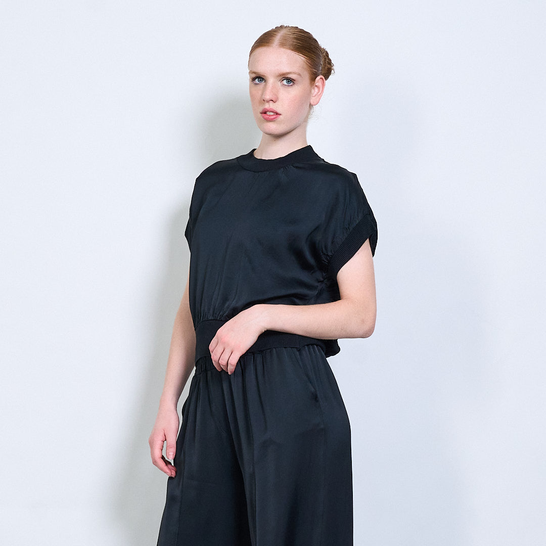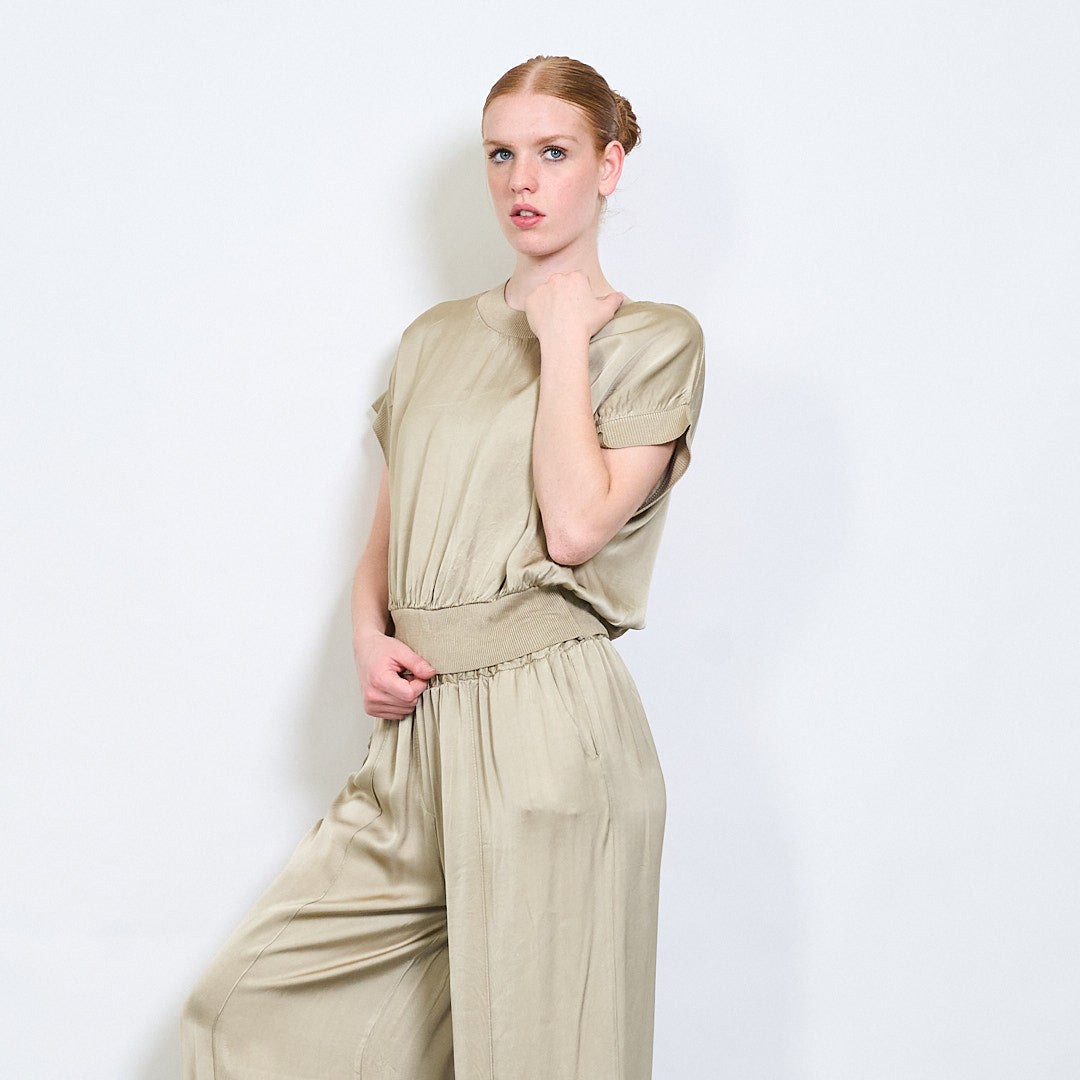 تي شيرت الساتان فضفاضة مع تقليم متماسكة بالجملة