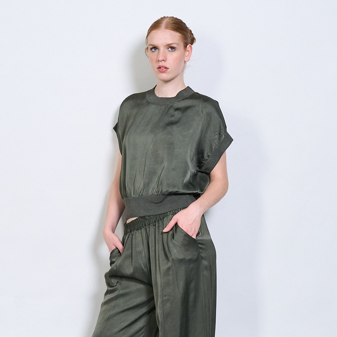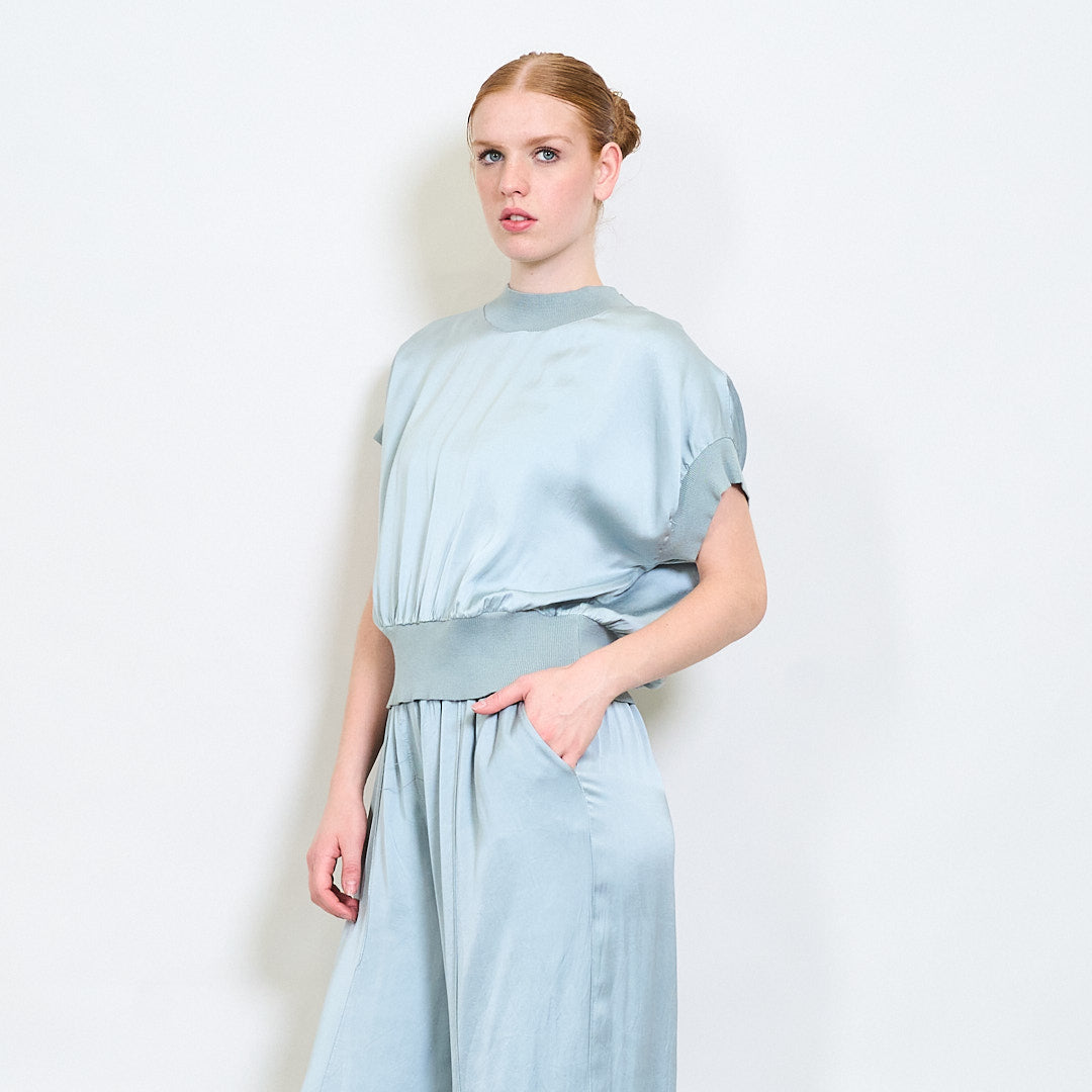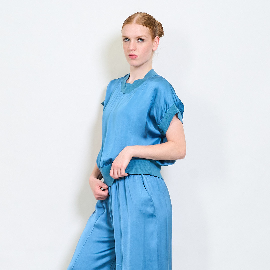 - تي شيرت أمبيا في Tessuto Satinato Dal Finish Morbido
