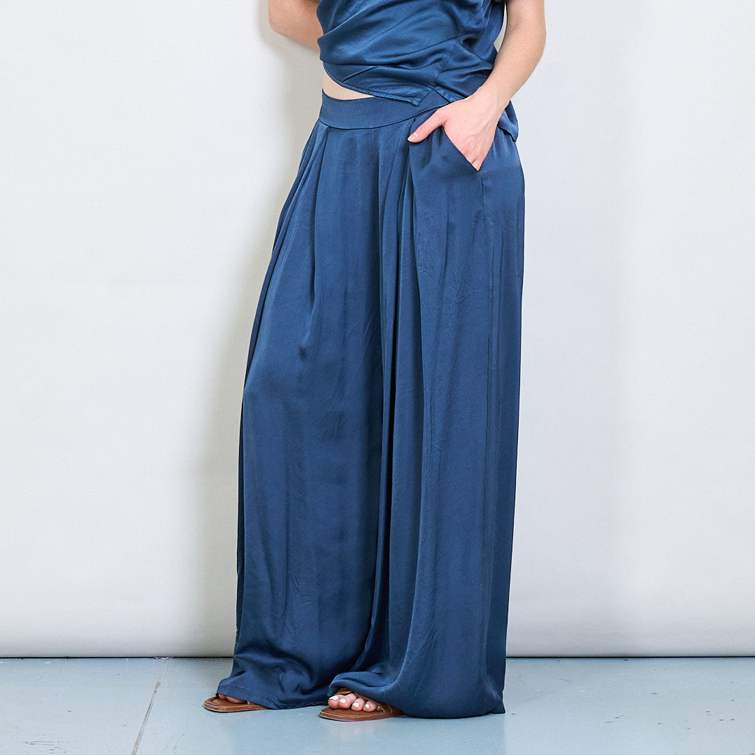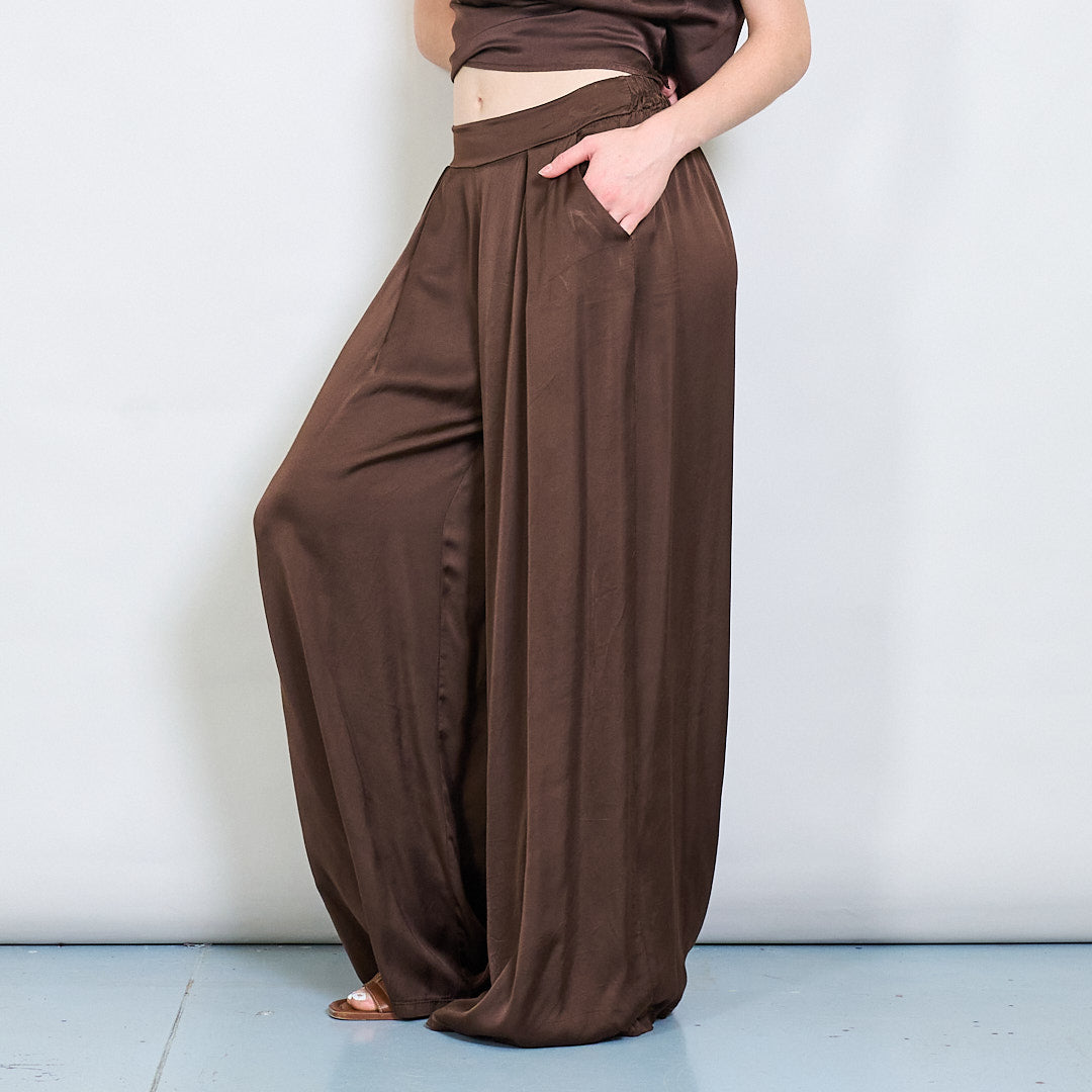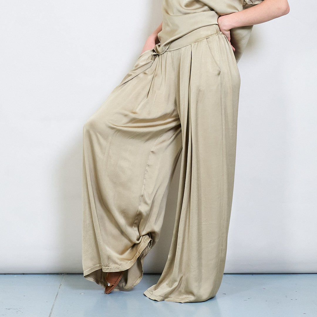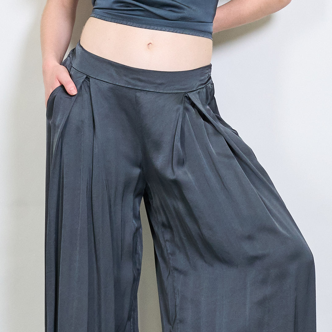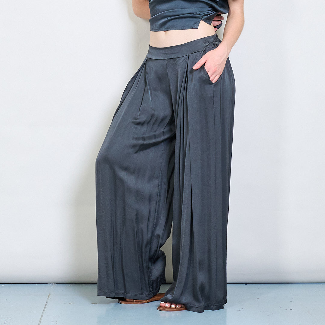 سراويل صقيل واسعة الساق مع جملة أمامية مطوية