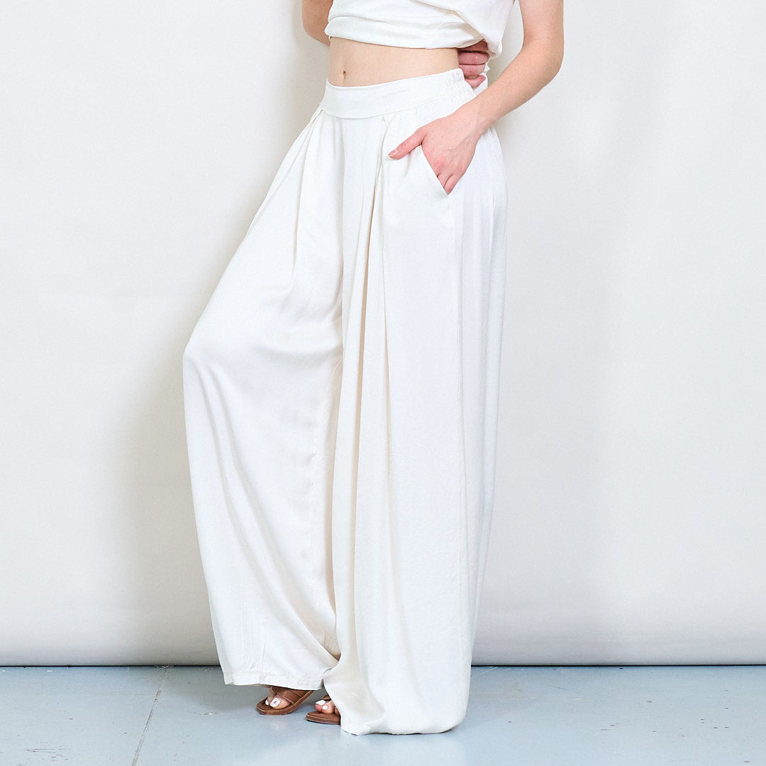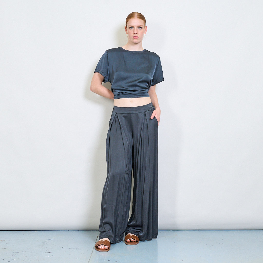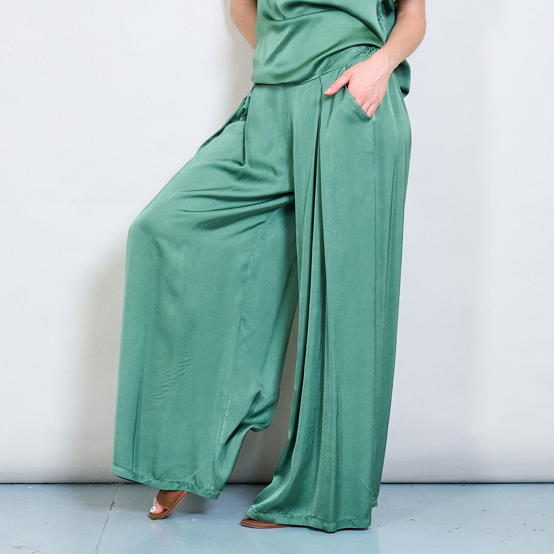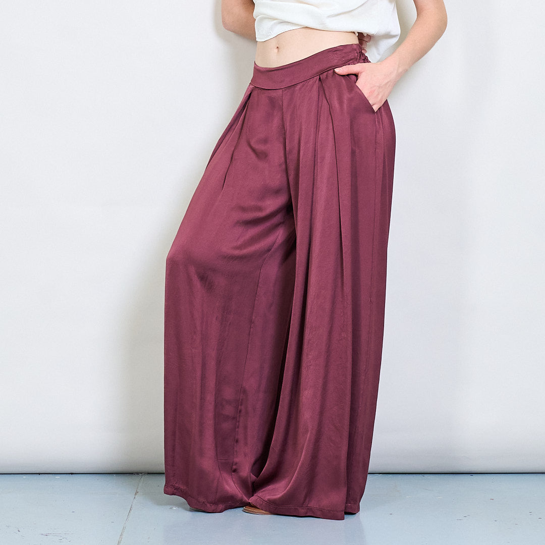 سراويل صقيل واسعة الساق مع جملة أمامية مطوية