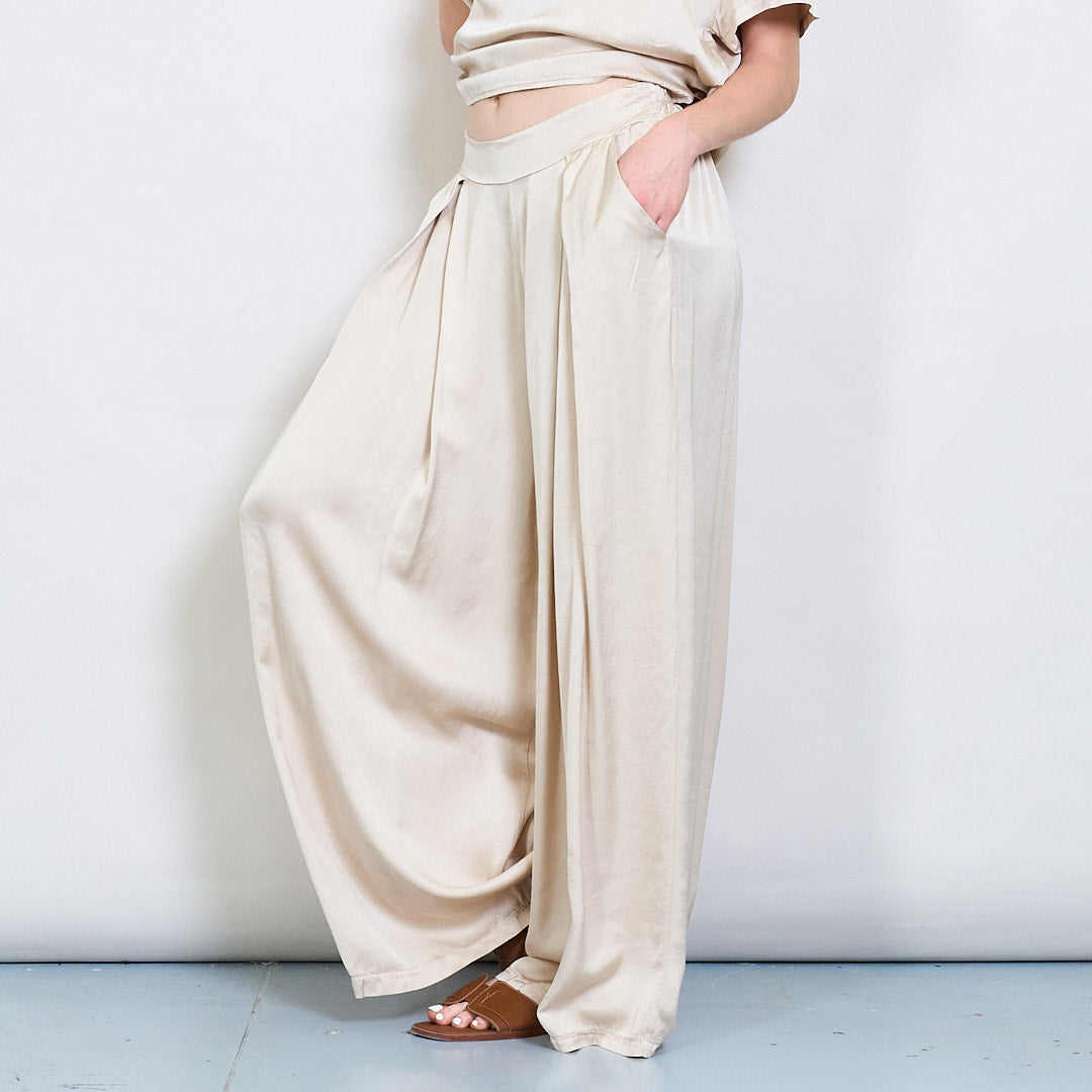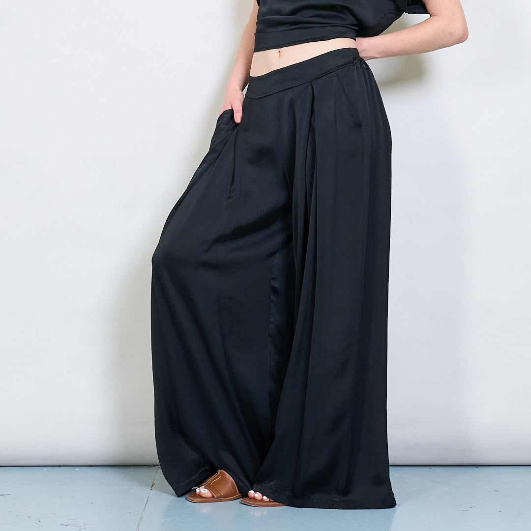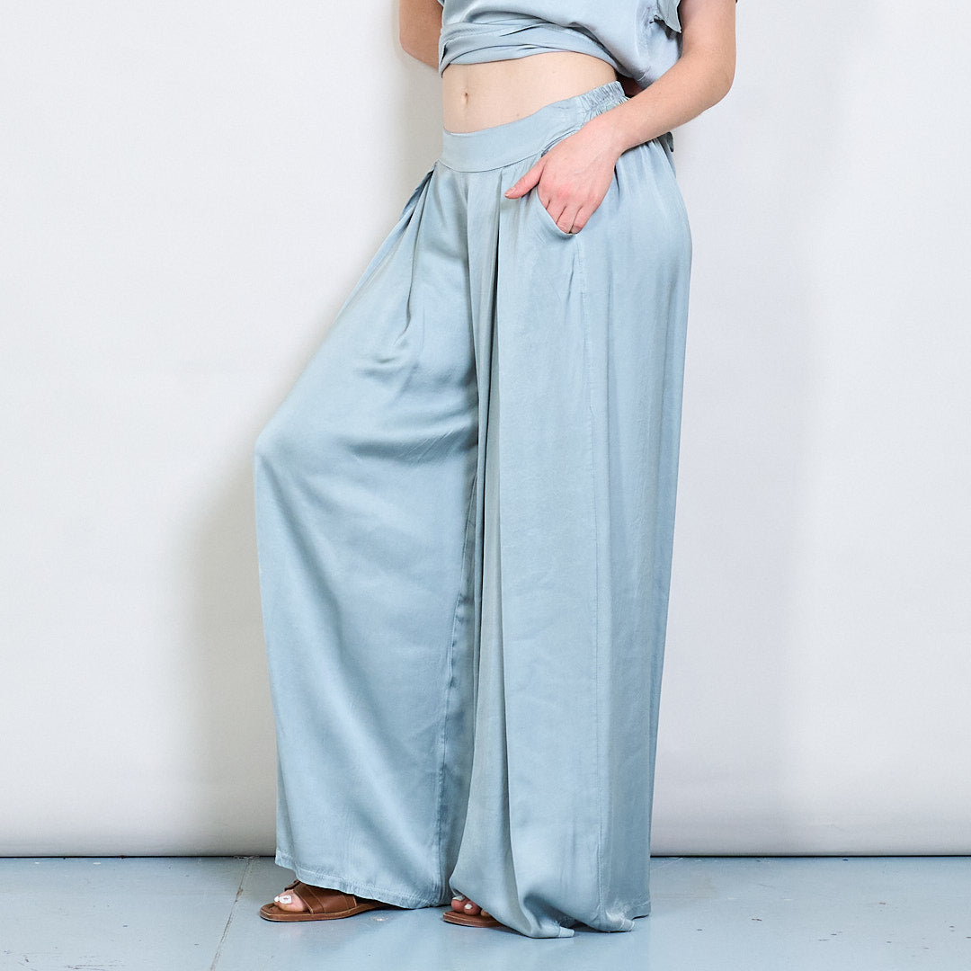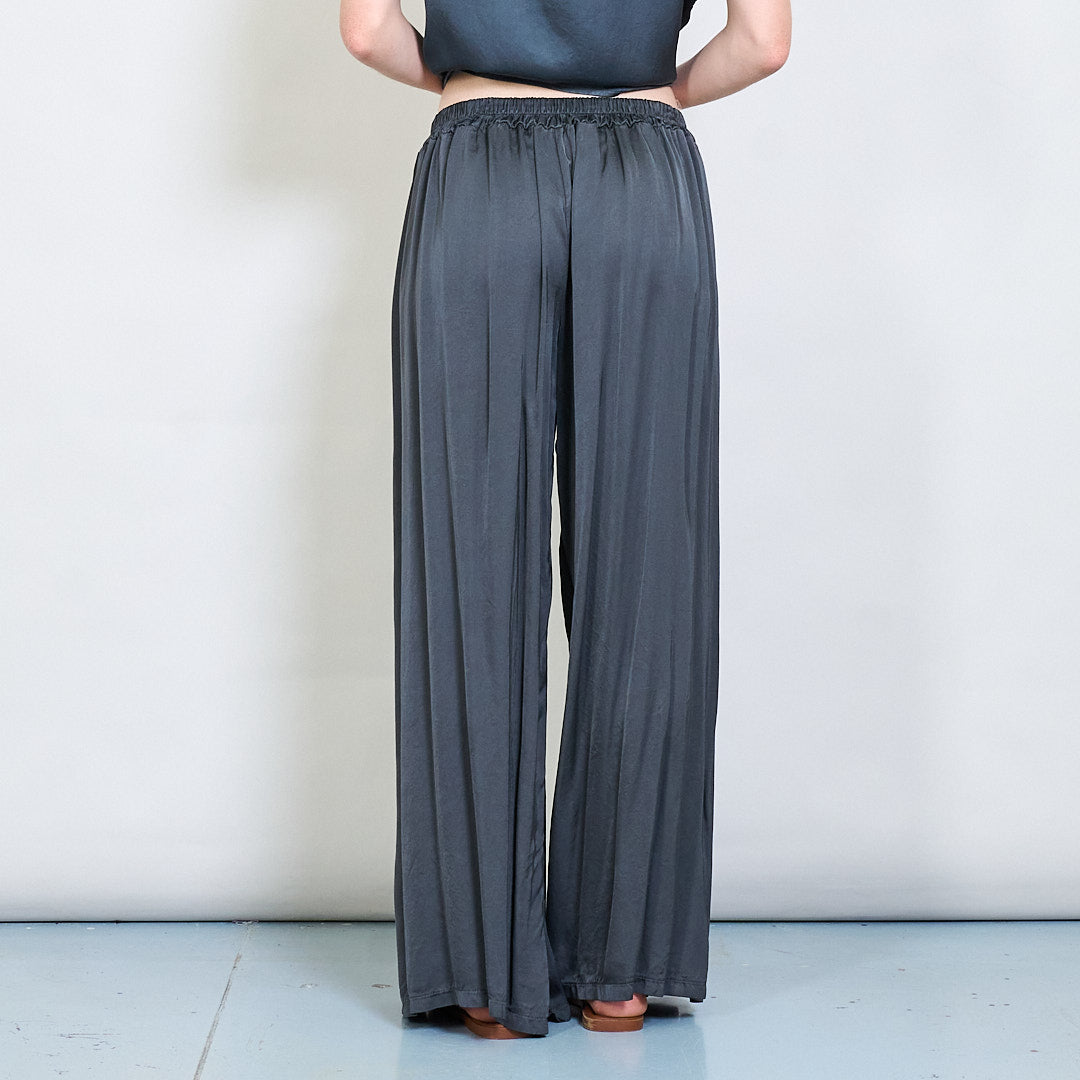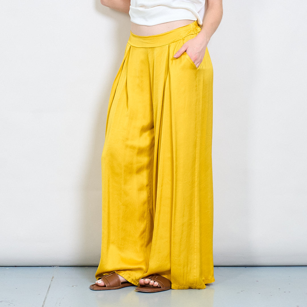 سراويل صقيل واسعة الساق مع جملة أمامية مطوية