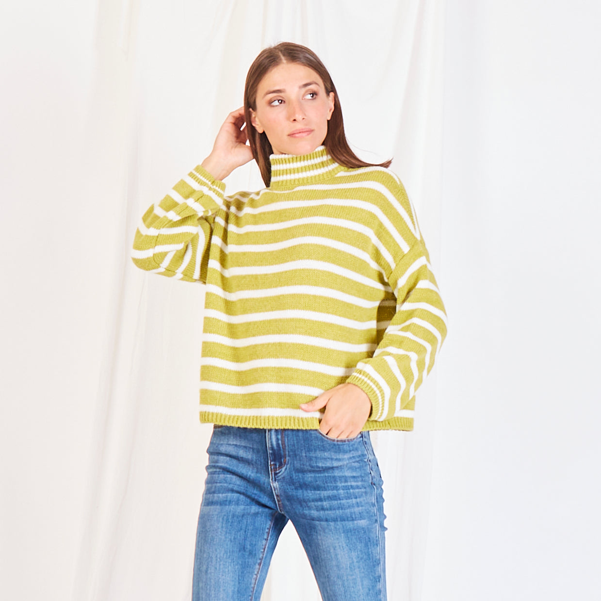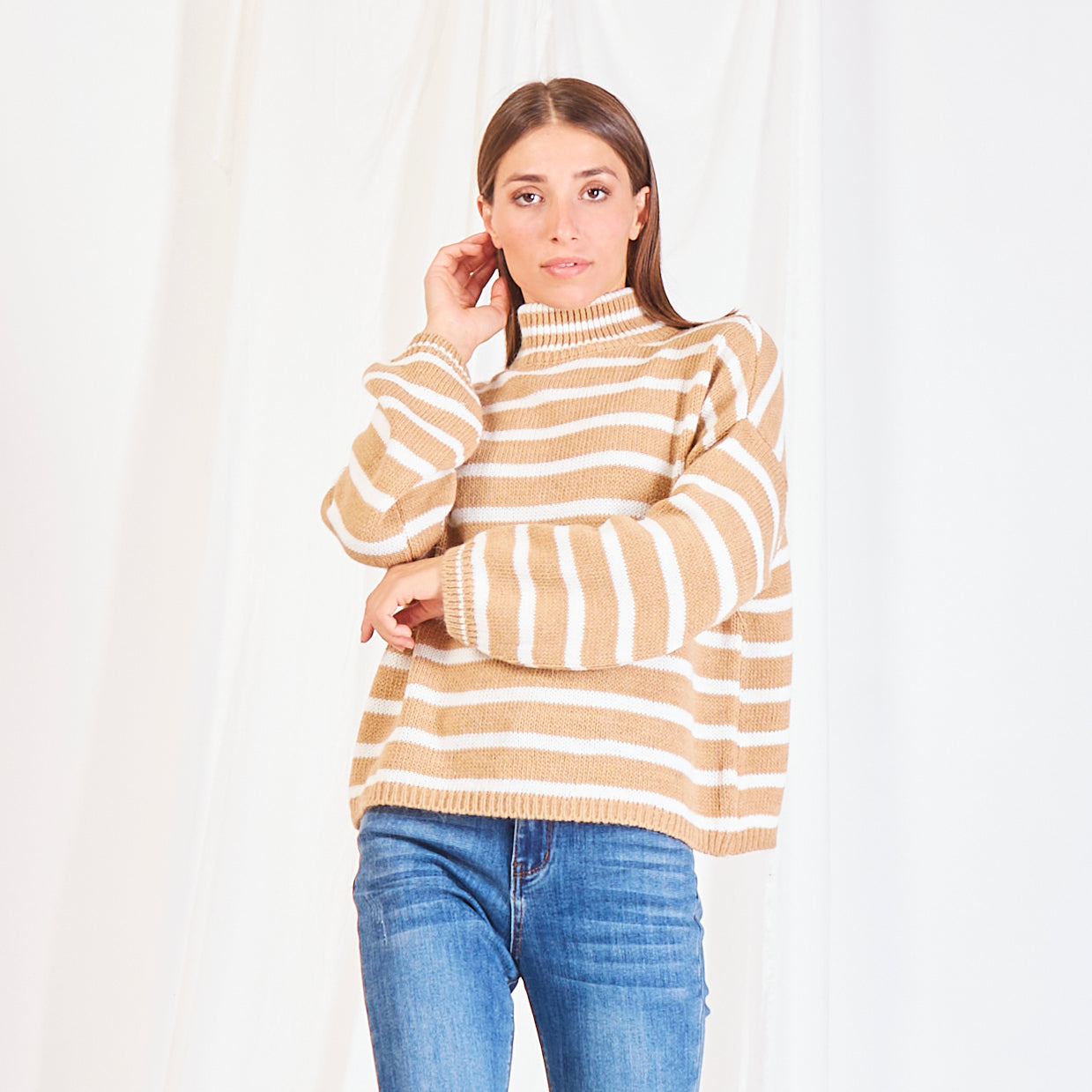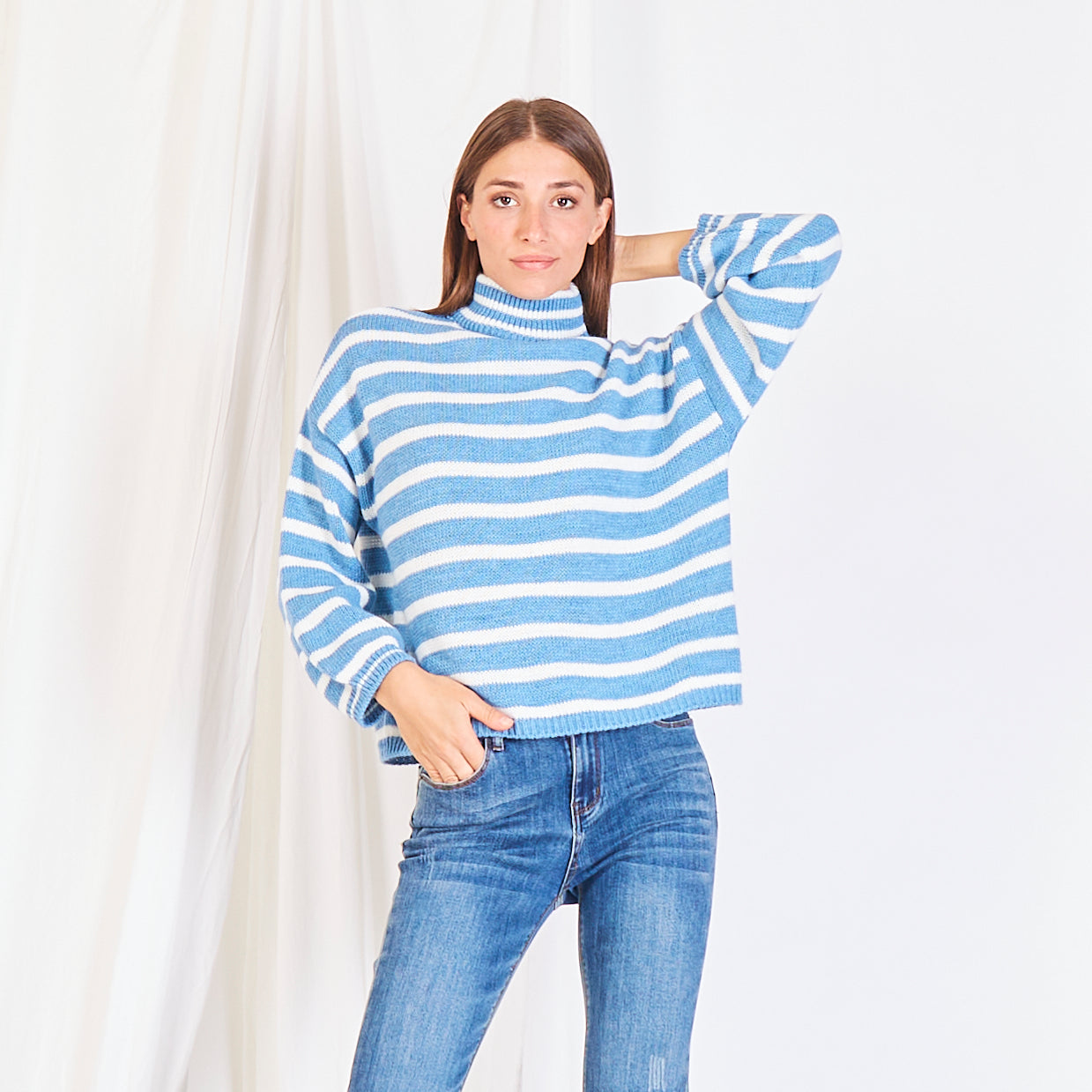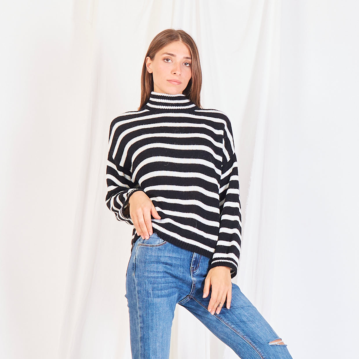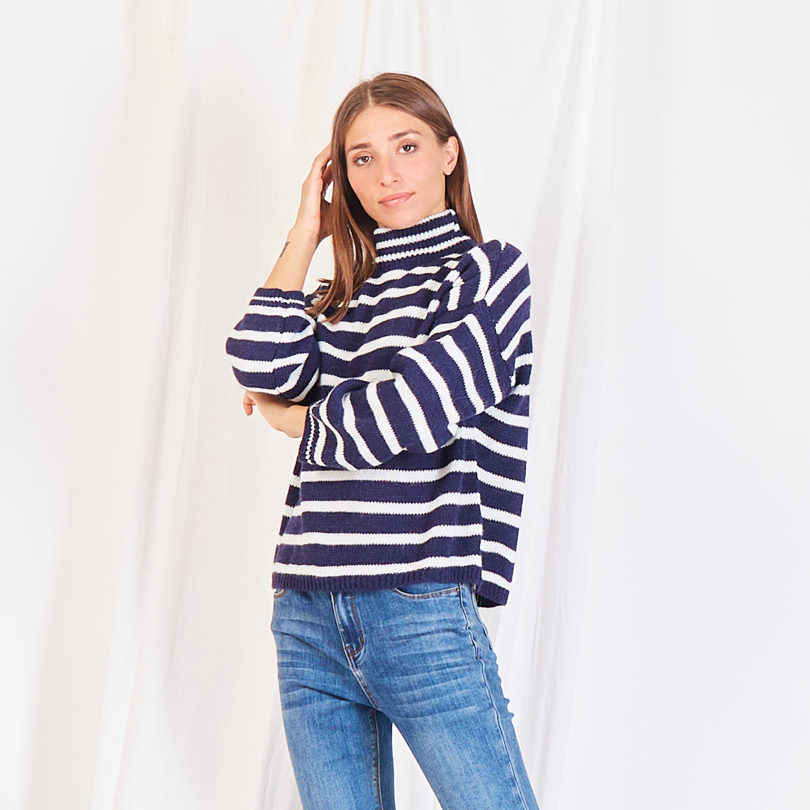 الجملة سترة متماسكة مخططة مع ذوي الياقات البيضاء