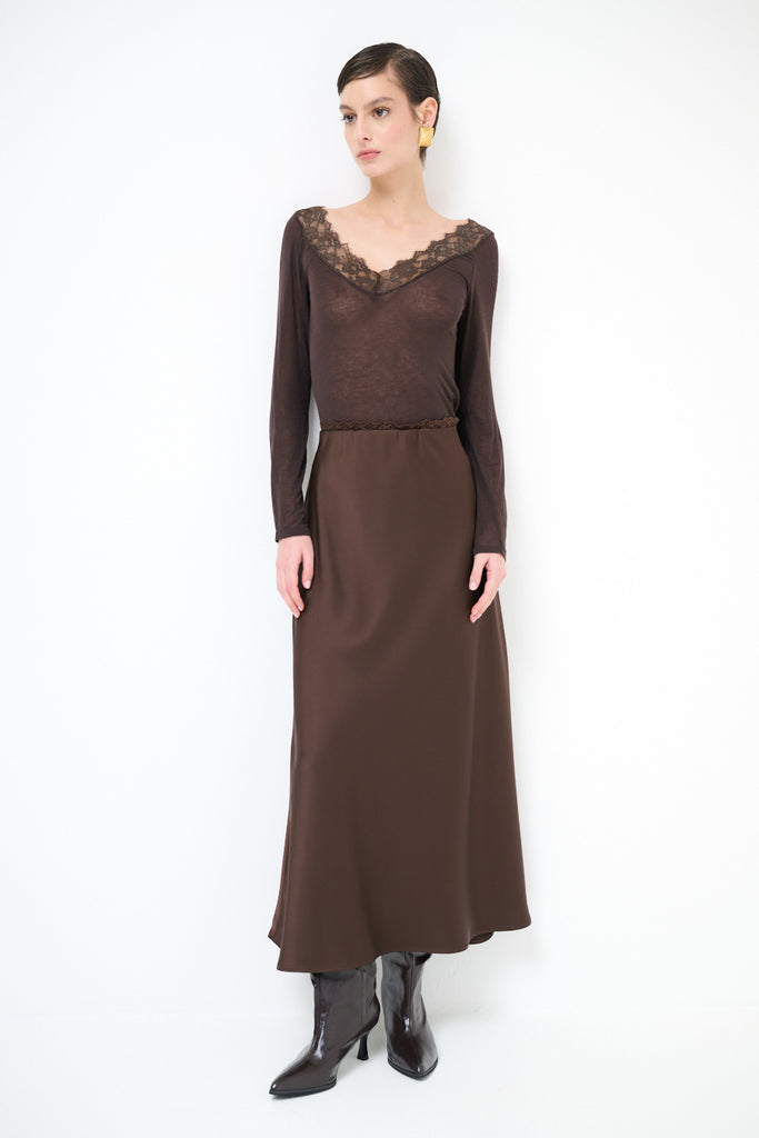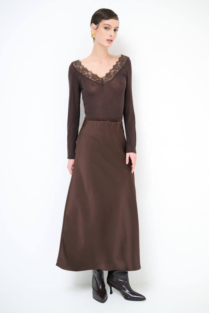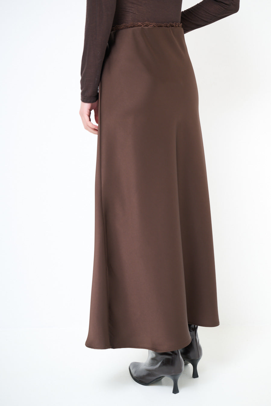 تنورة ميدي بتدفق ملمس حريري مع ثنية مستقيمة بسيطة بالجملة