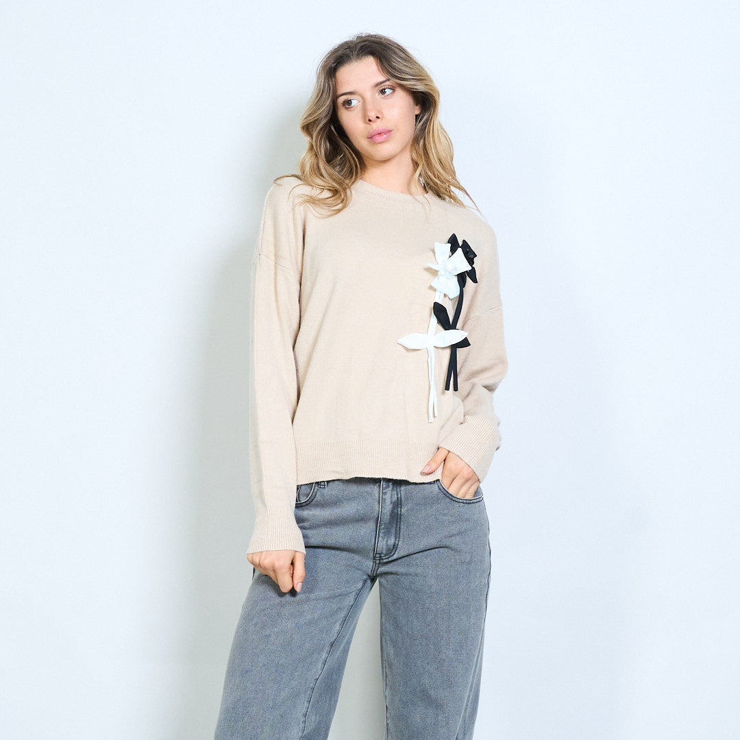 سترة محبوكة برقبة دائرية مزينة بفيونكة للبيع بالجملة