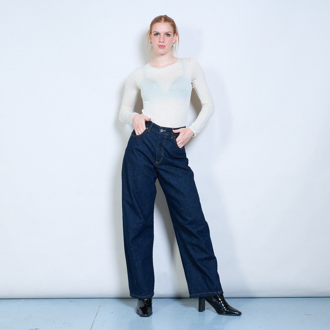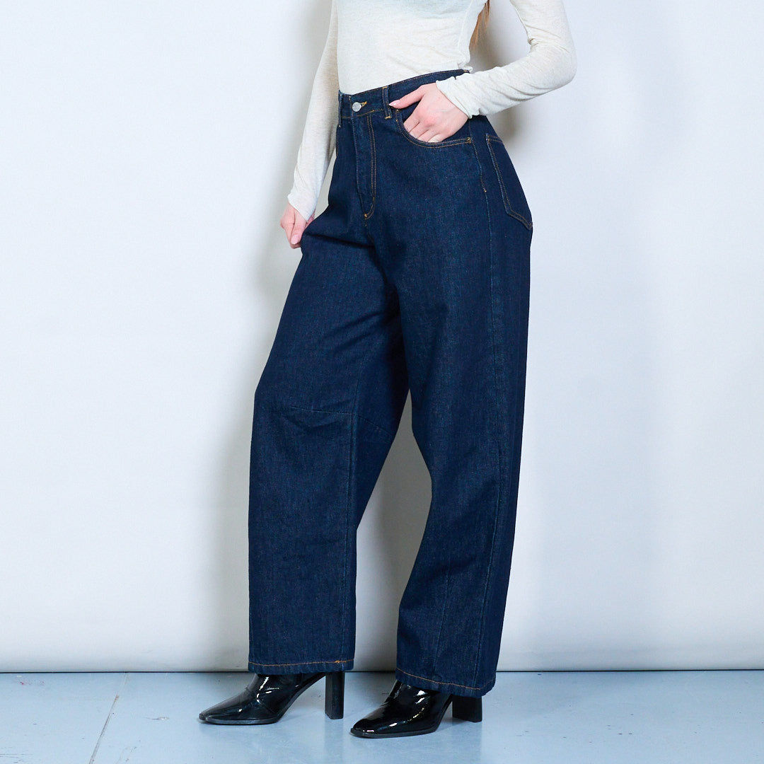 سراويل جينز واسعة الساق ومطويات مريحة عالية الارتفاع للبيع بالجملة