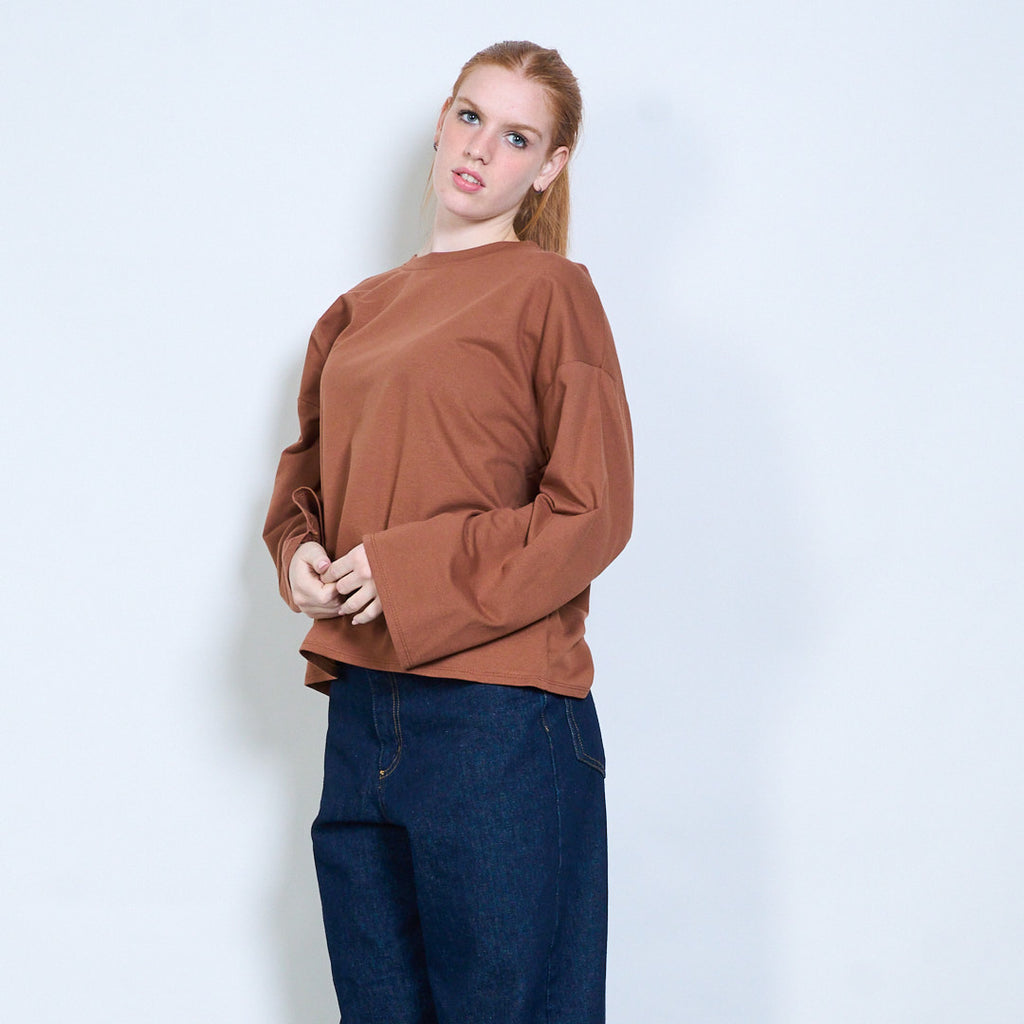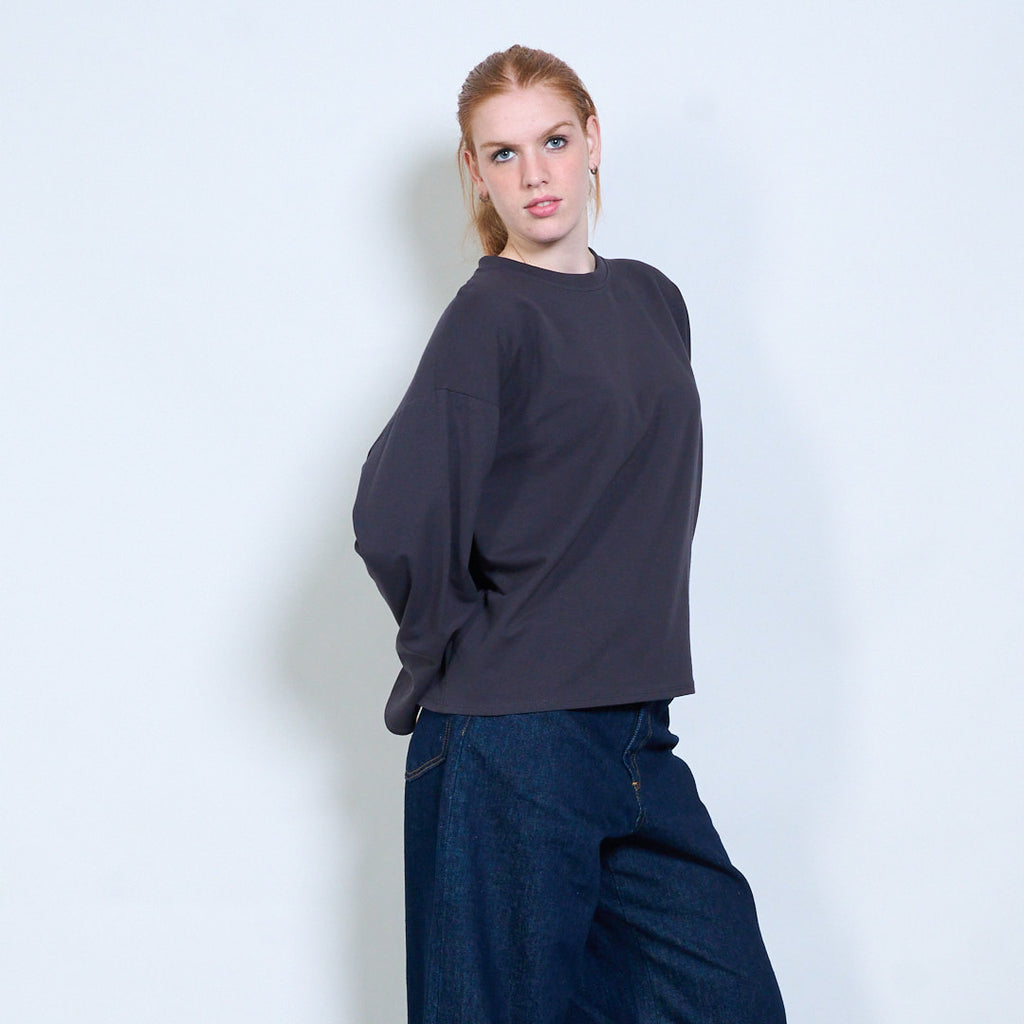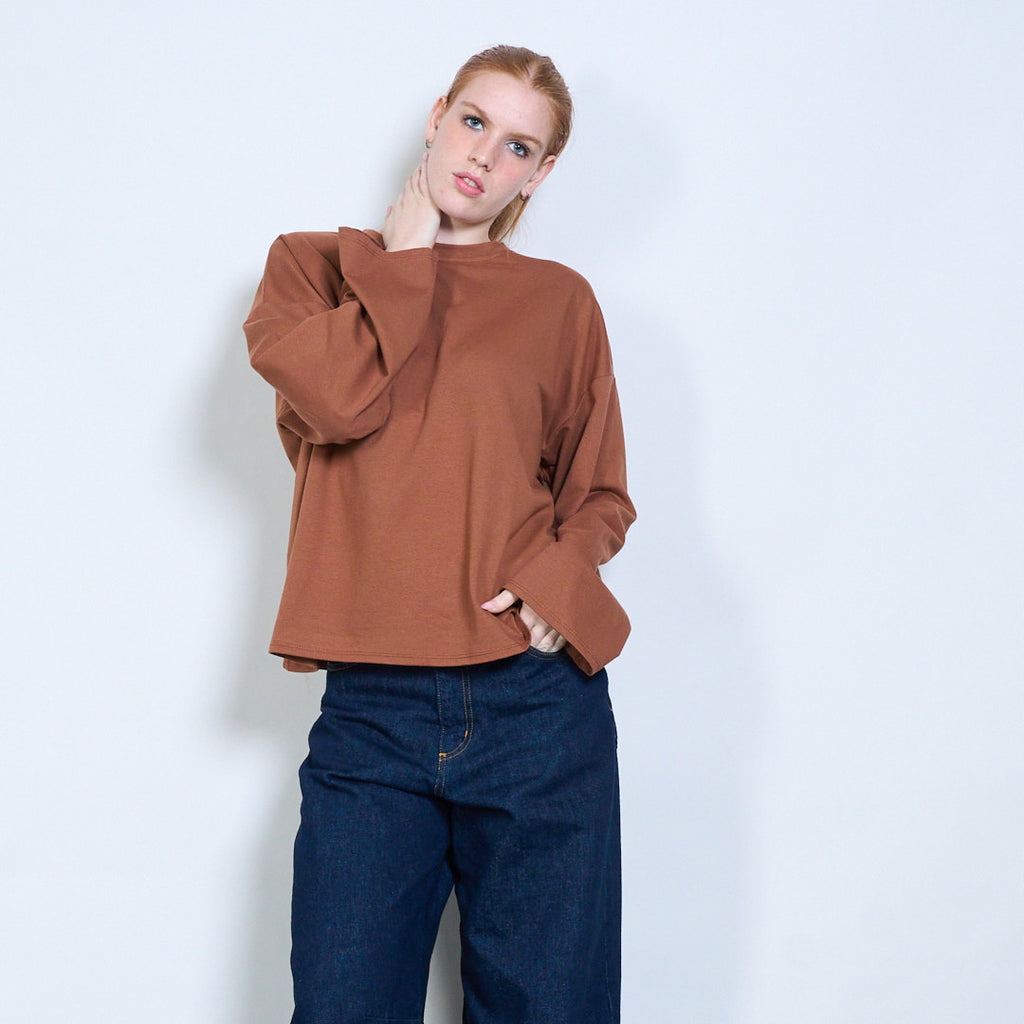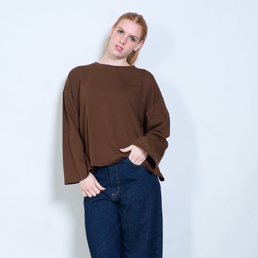 قمة مريحة ذات أكتاف منسدلة كبيرة الحجم وأكمام طويلة للبيع بالجملة