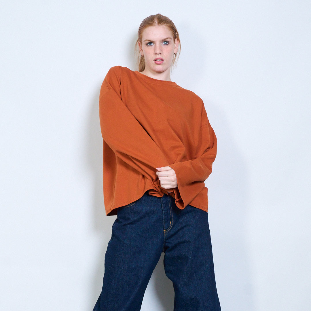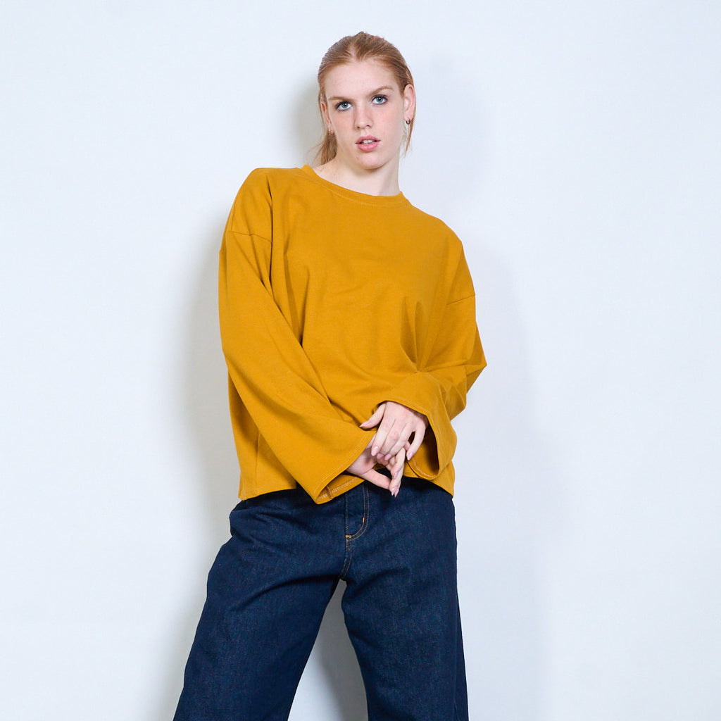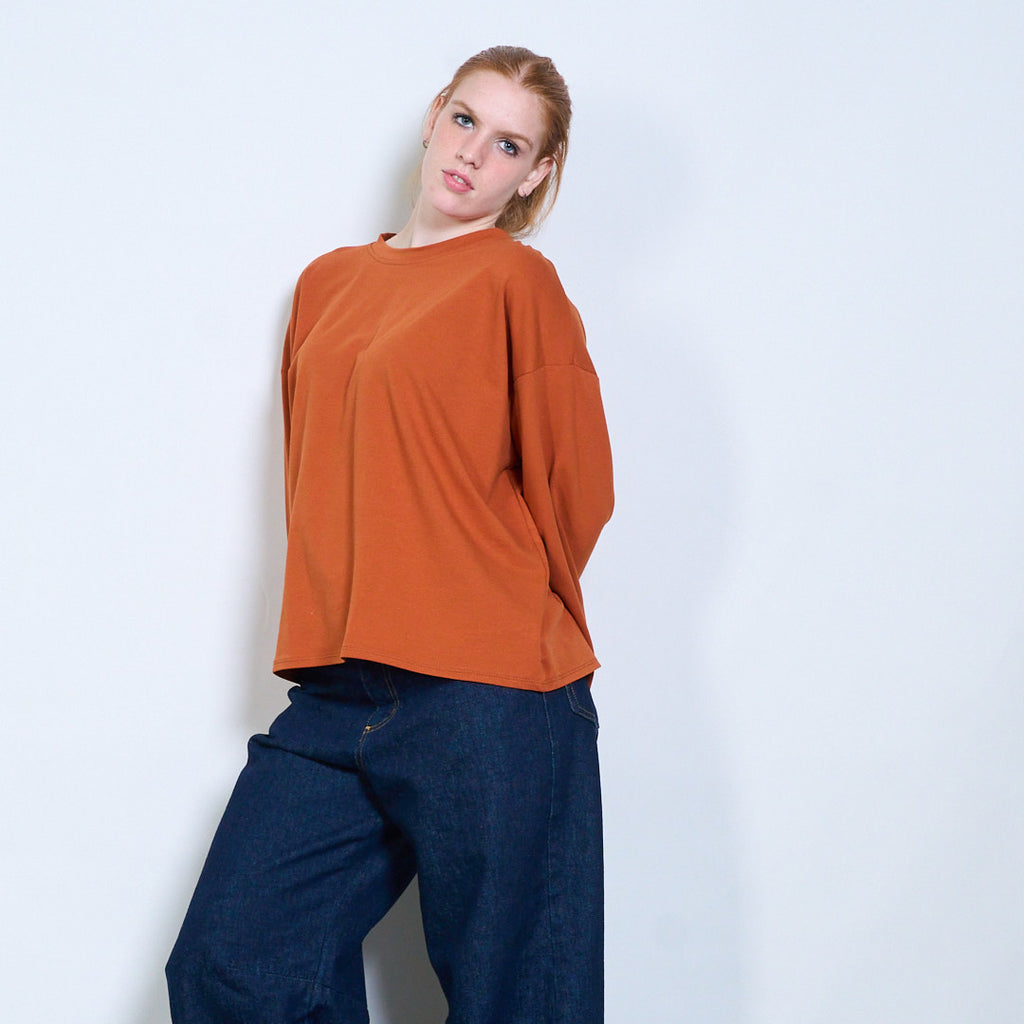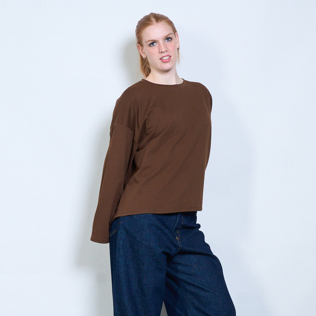 قمة مريحة ذات أكتاف منسدلة كبيرة الحجم وأكمام طويلة للبيع بالجملة