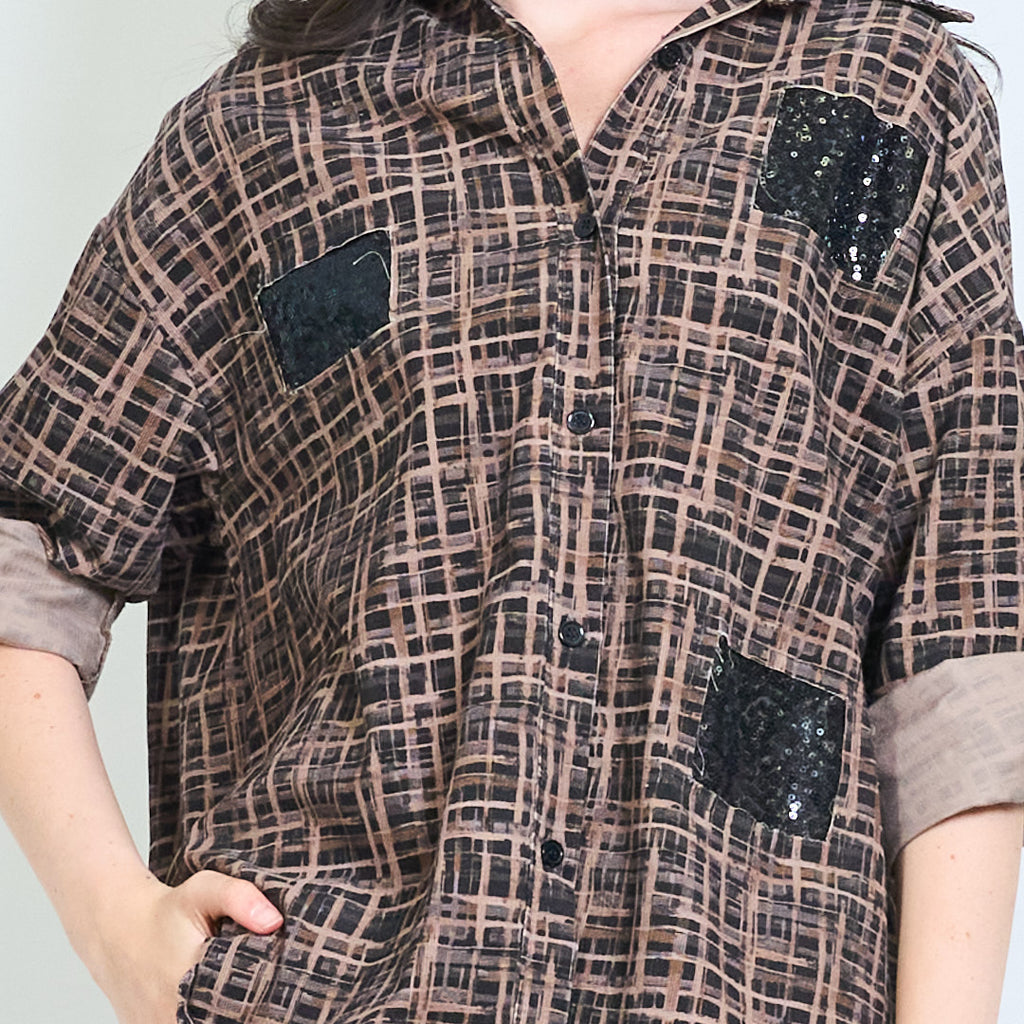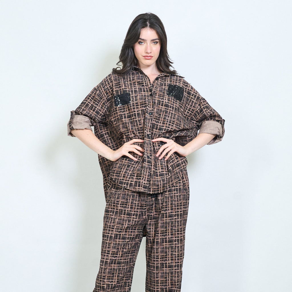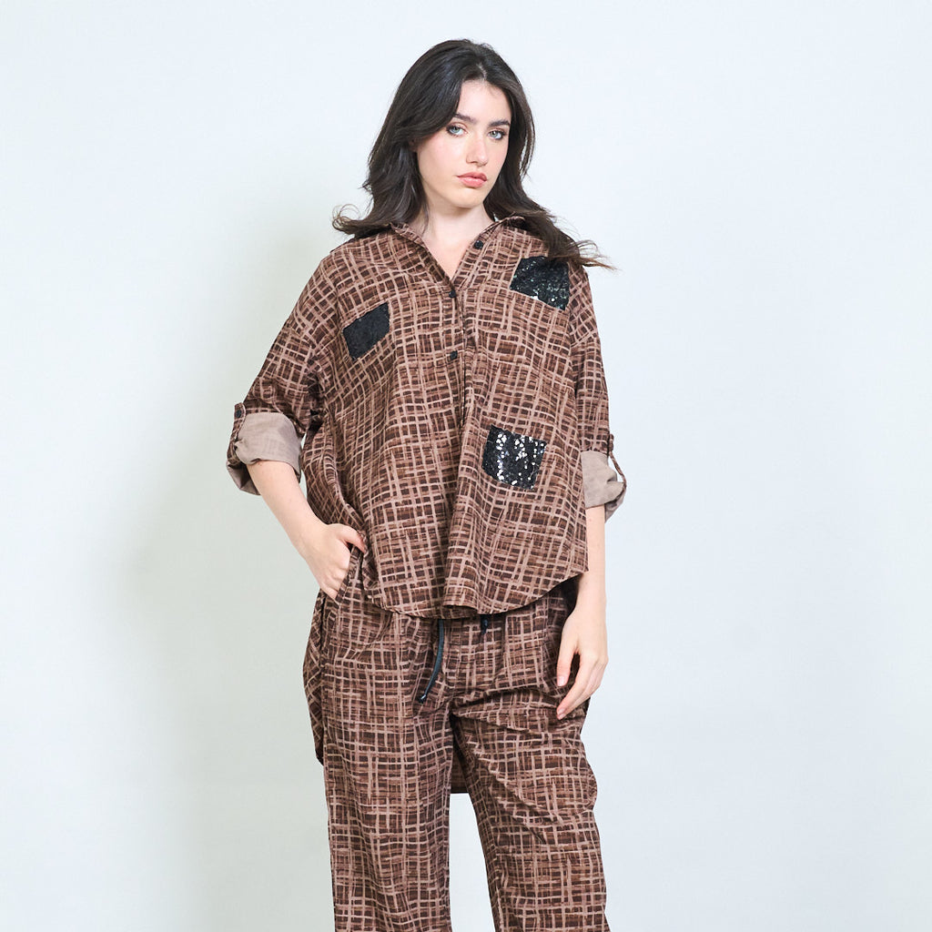قميص أزرار مخملية هندسية مع لهجات الترتر بالجملة