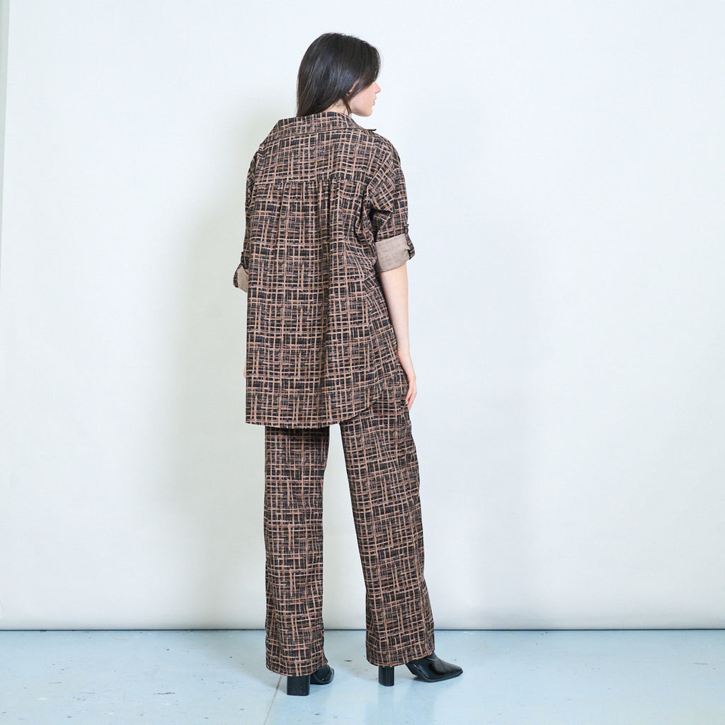 - النسيج المخملي مع نمط الشبكة الهندسية الجريئة في نغمات بنية اللون