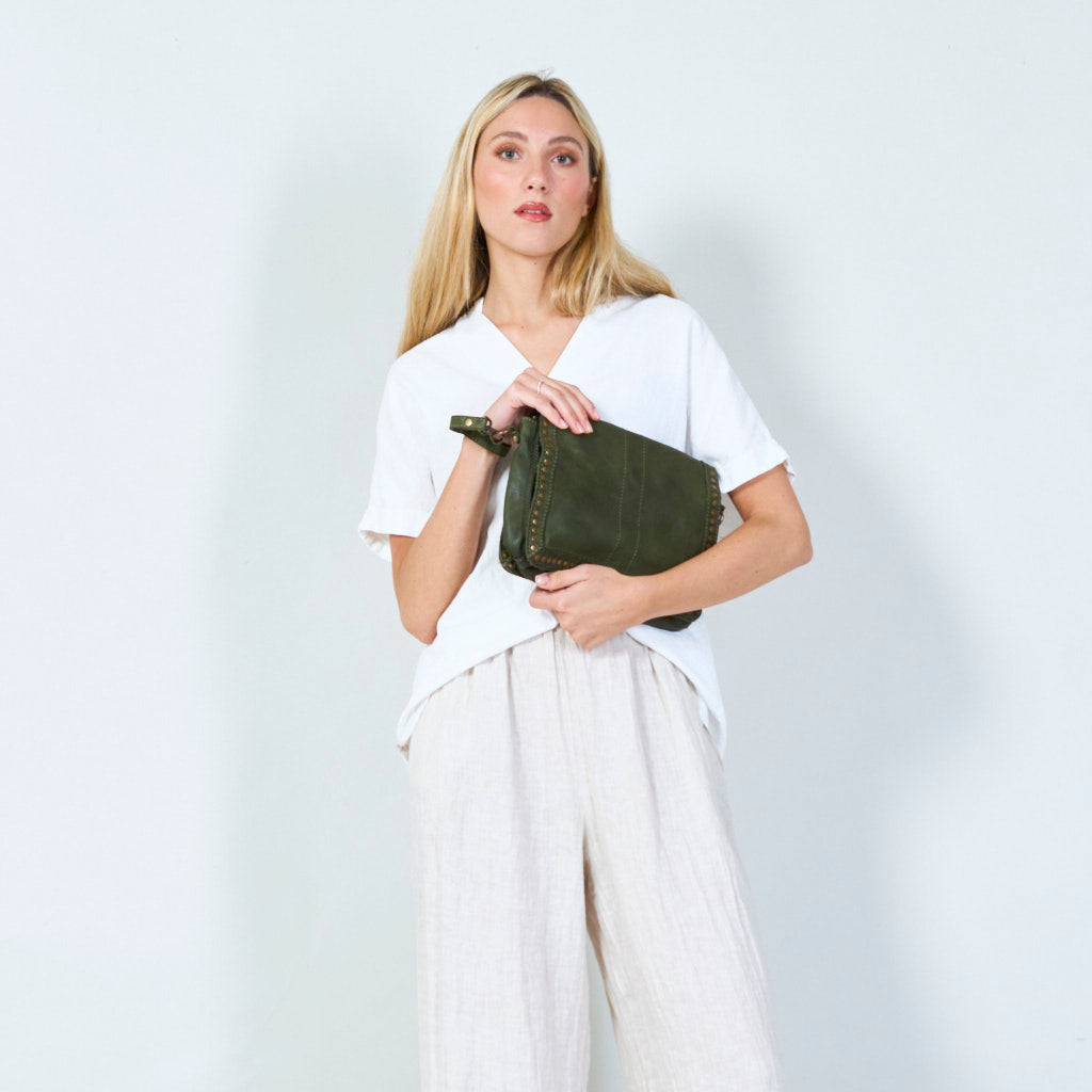 - مادة: جلد عجل مغسول ومصبوغ بالملابس