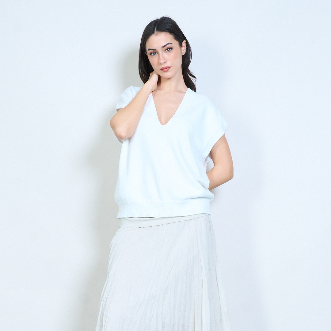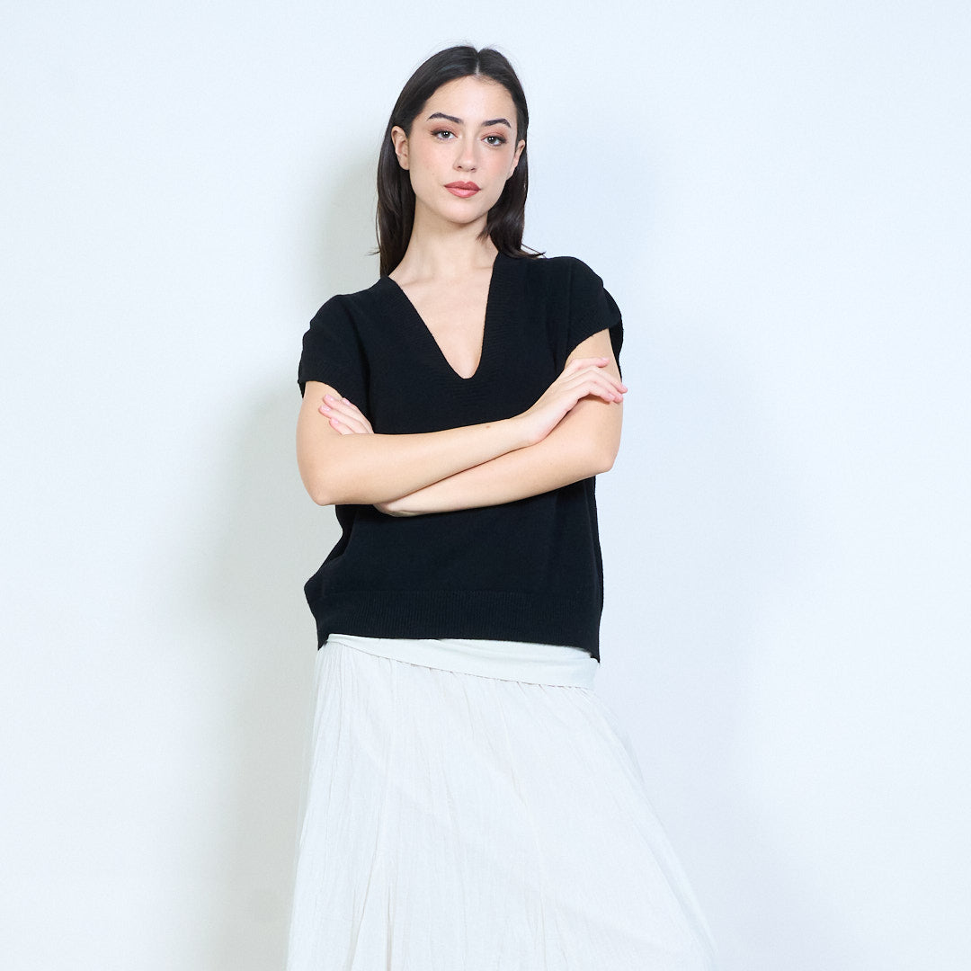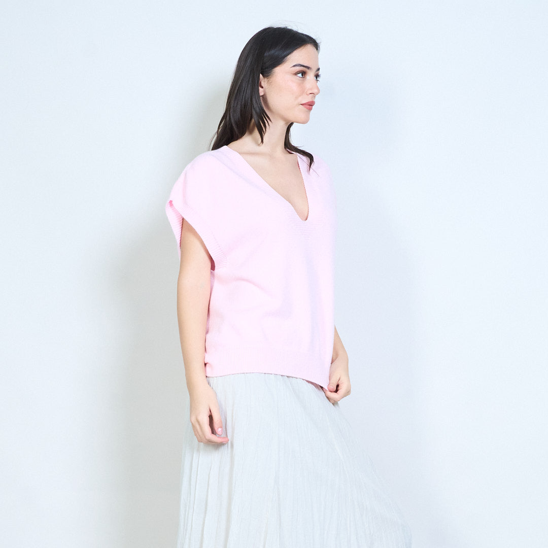 سترة متماسكة بدون أكمام برقبة على شكل حرف V للبيع بالجملة