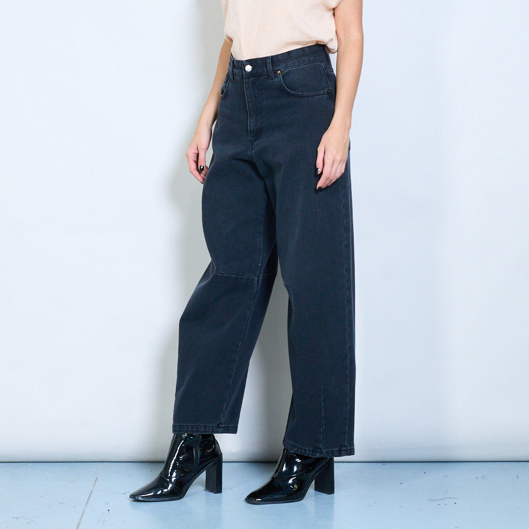 جينز أسود مغسول بساق مستقيمة للبيع بالجملة