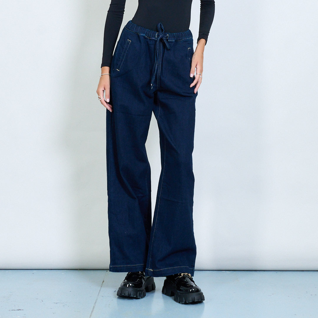 خصر الساق على نطاق واسع الخصر الجينز الداكن بالجملة