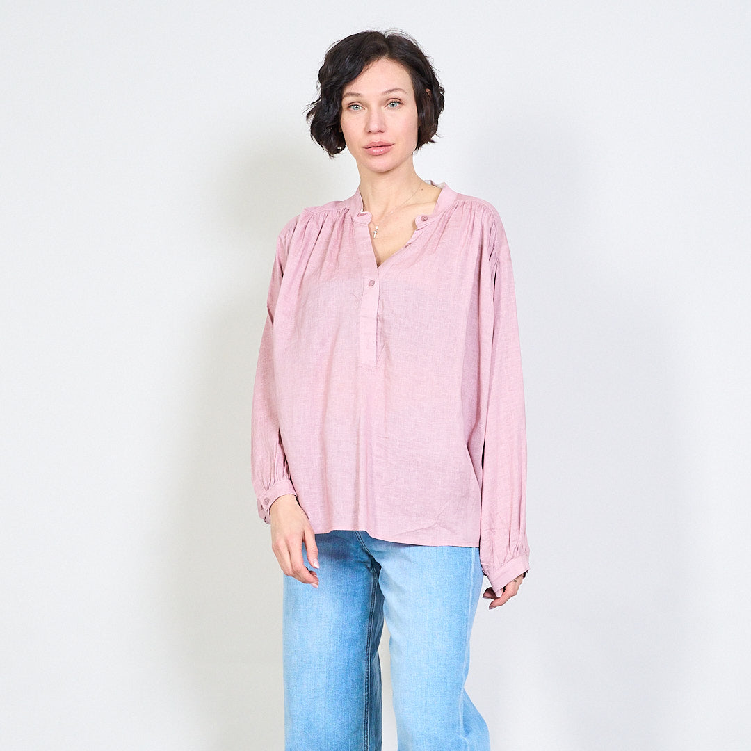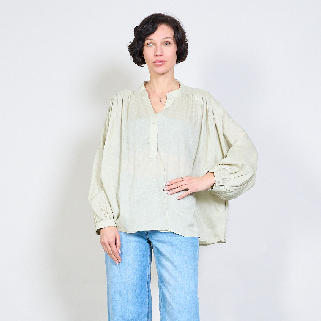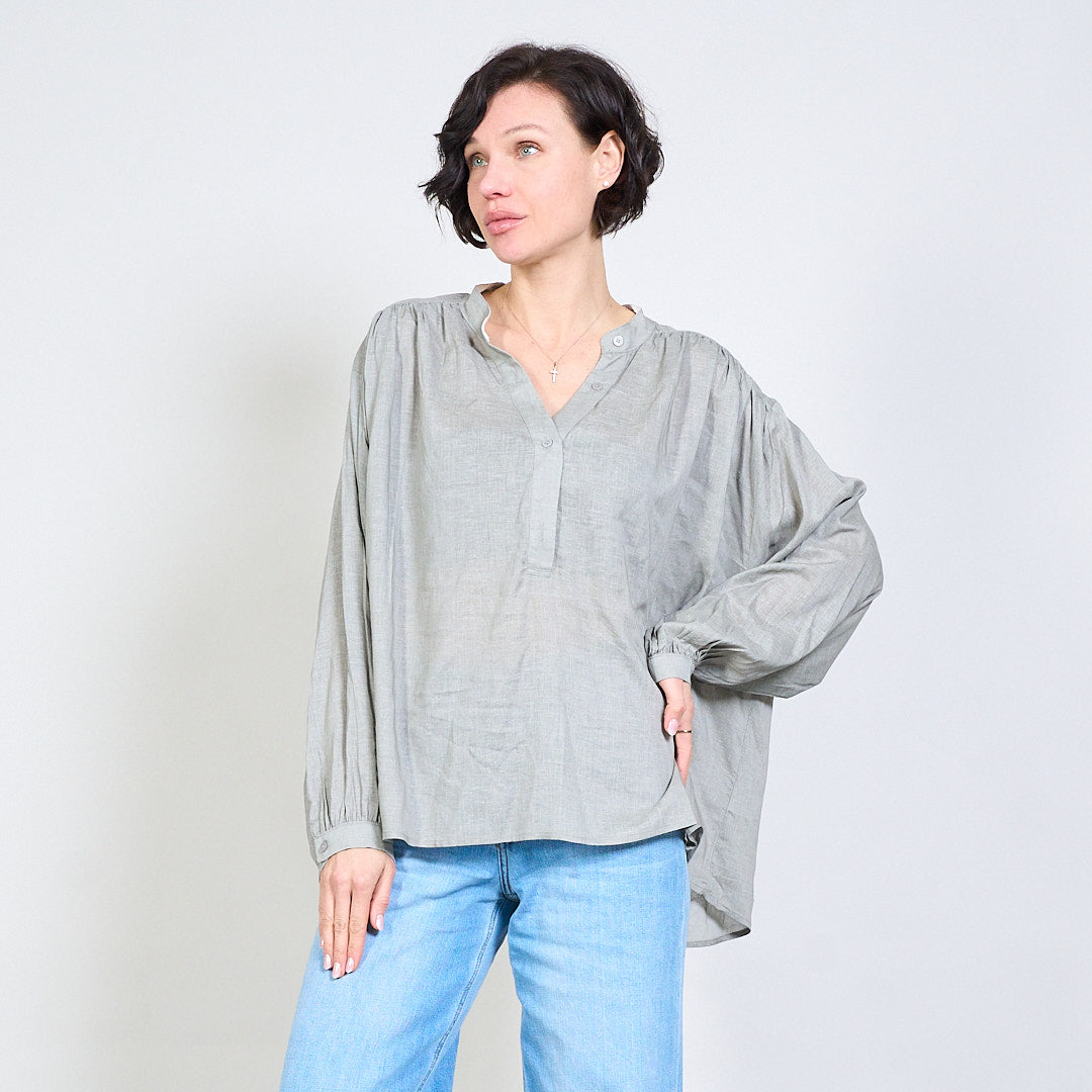 بلوزة V-Flowy Flowy مع تفاصيل الزر بالجملة