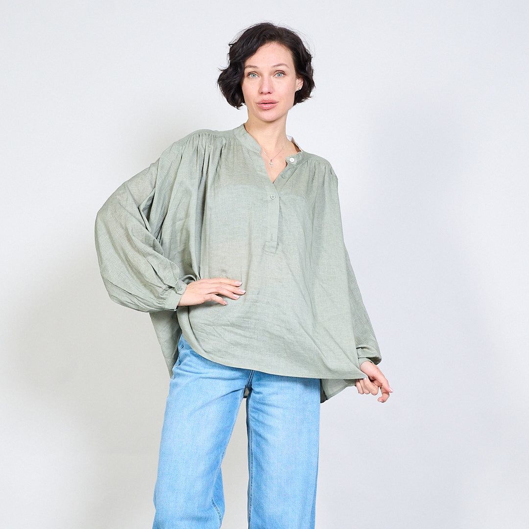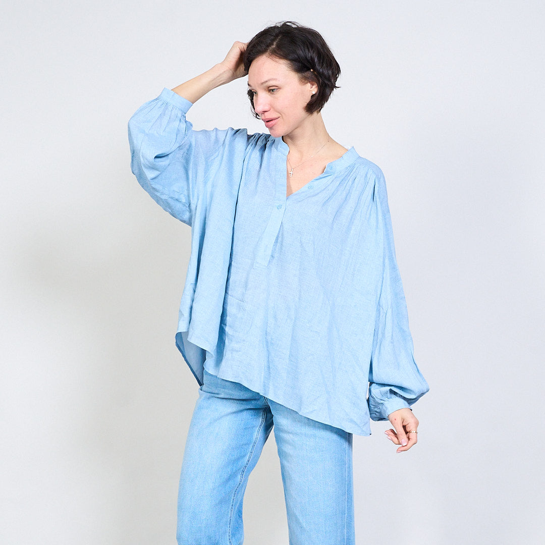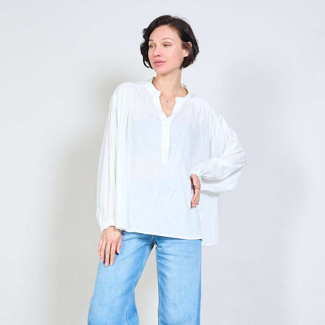 بلوزة V-Flowy Flowy مع تفاصيل الزر بالجملة