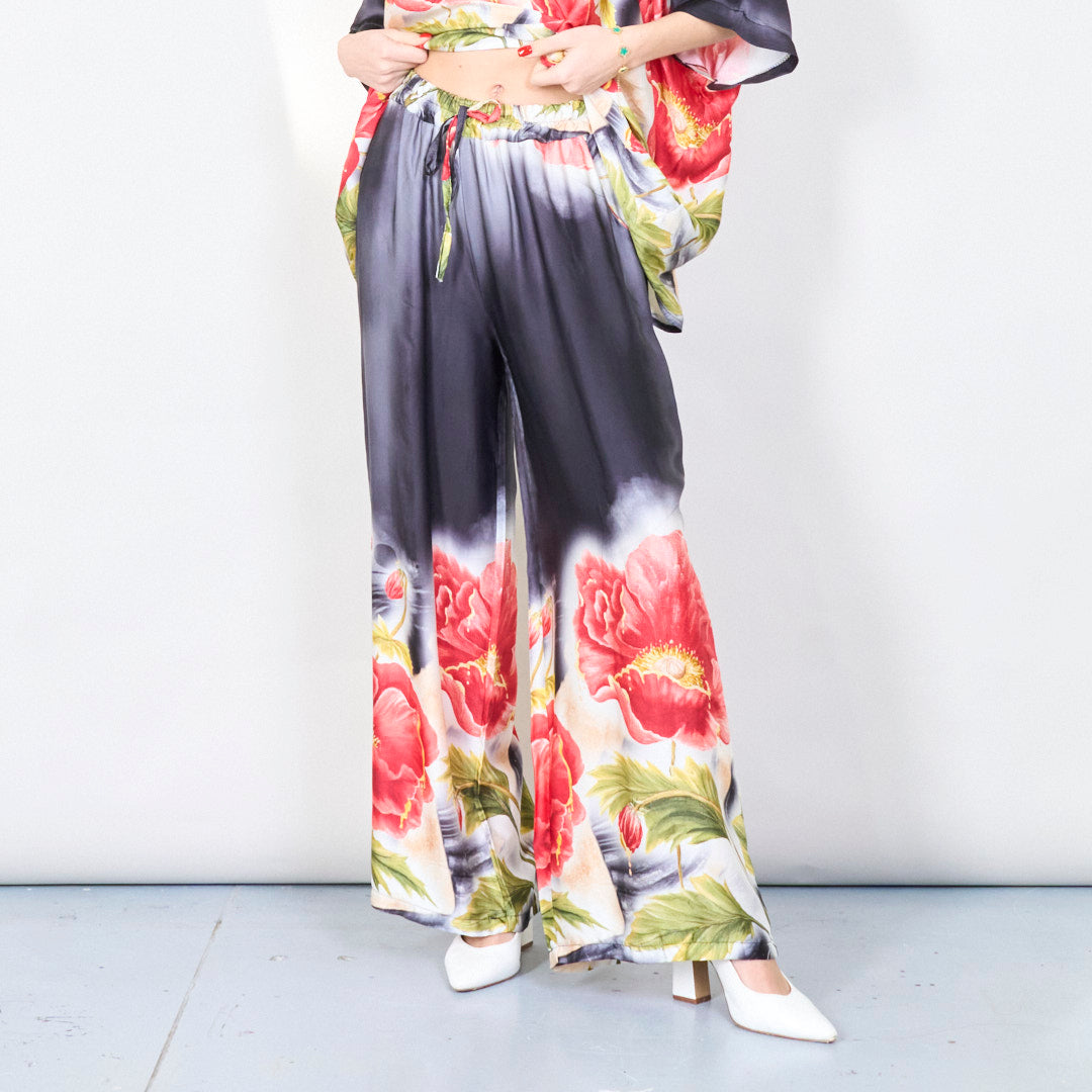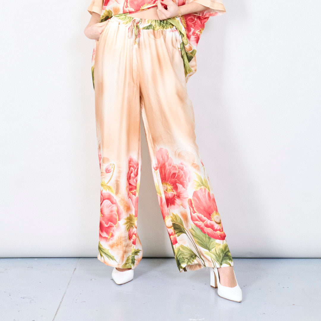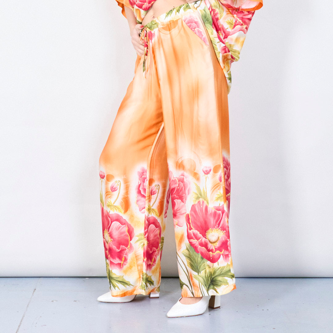 طباعة الأزهار السراويل الحريرية واسعة الساق مع الرباط بالجملة