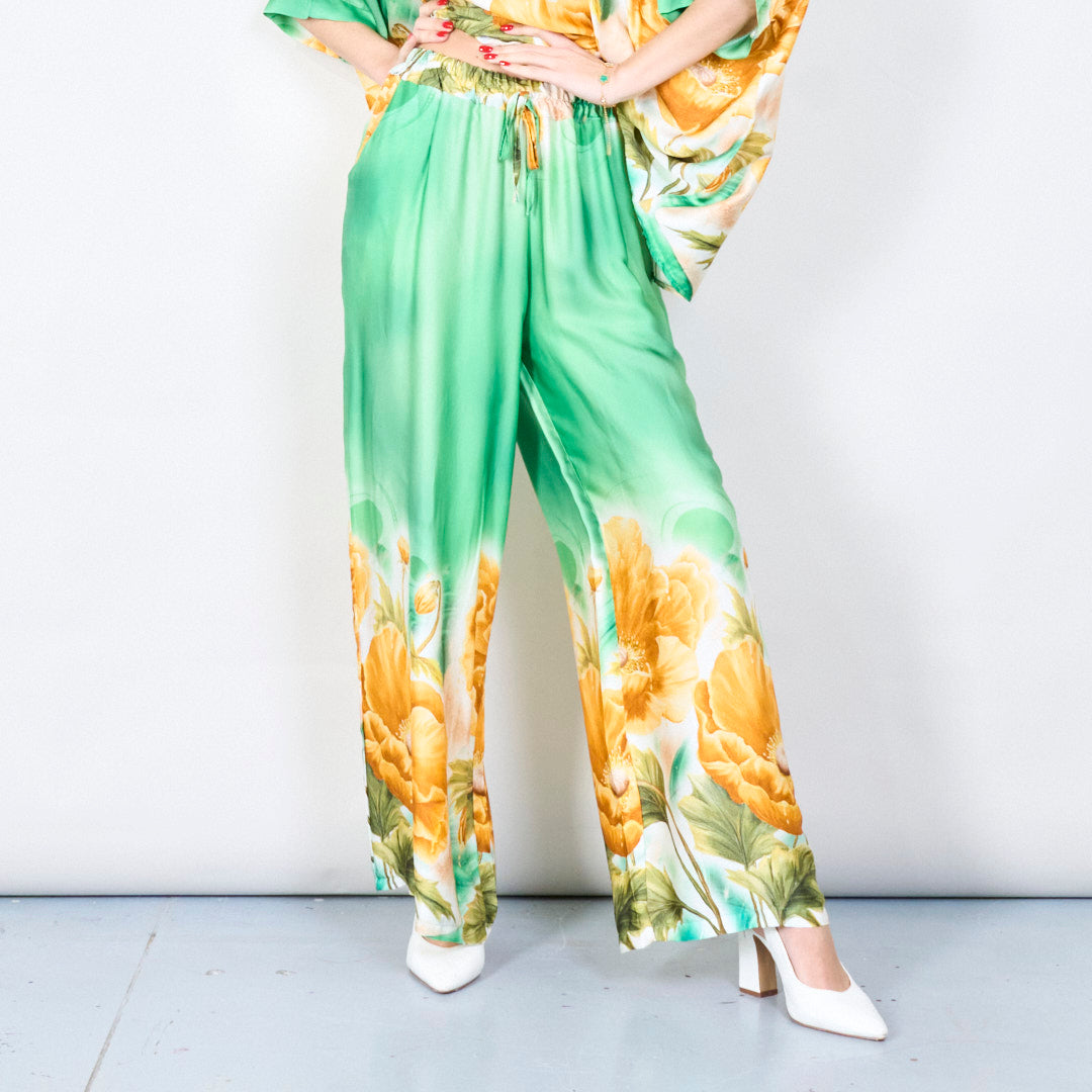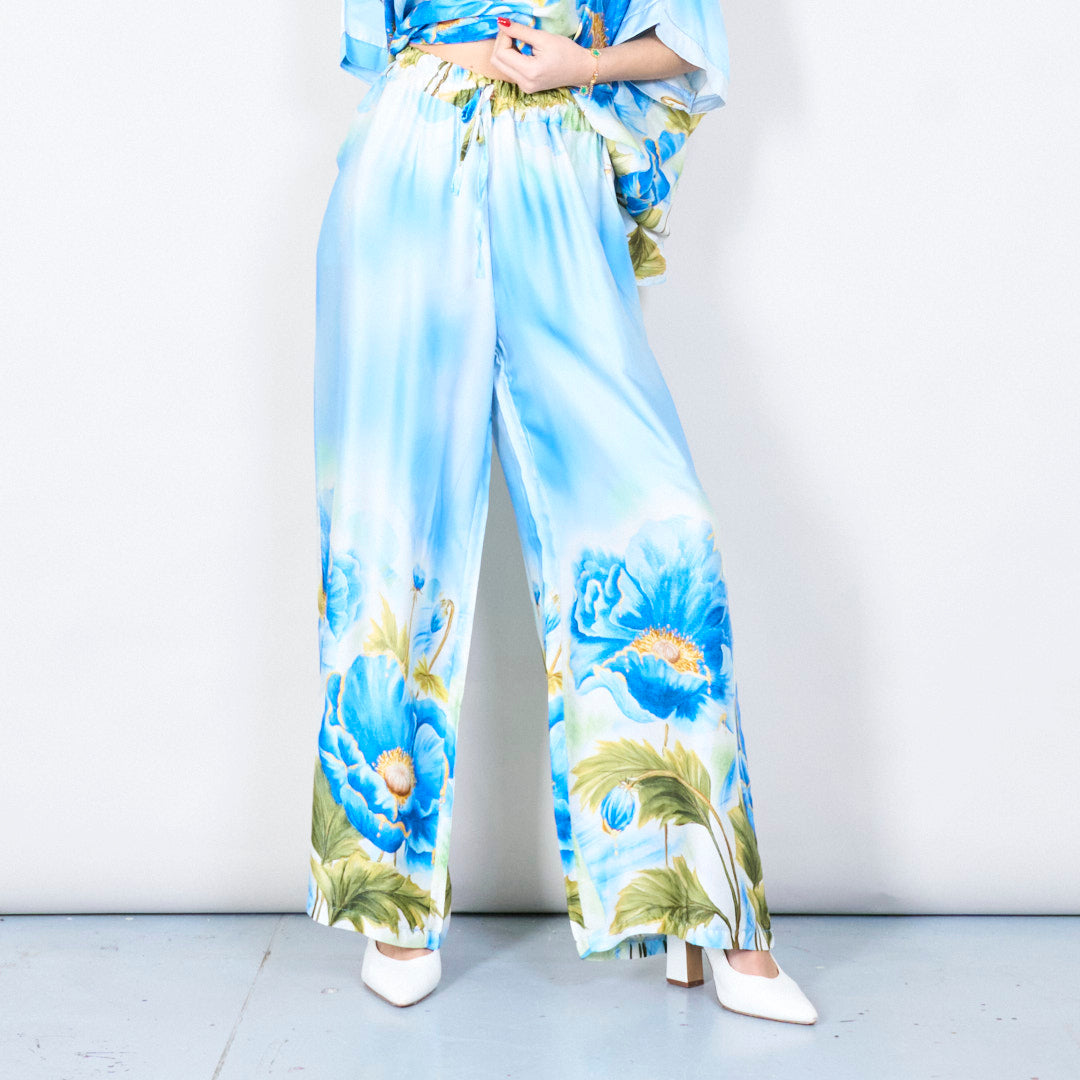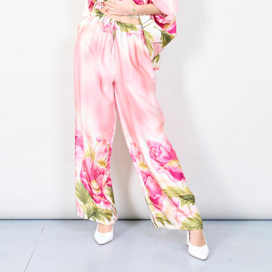 طباعة الأزهار السراويل الحريرية واسعة الساق مع الرباط بالجملة