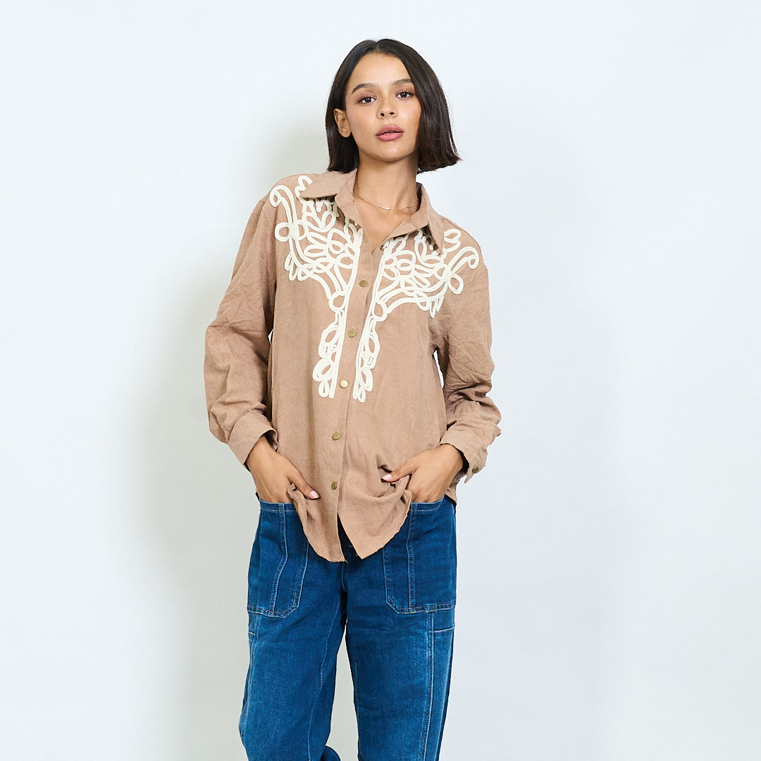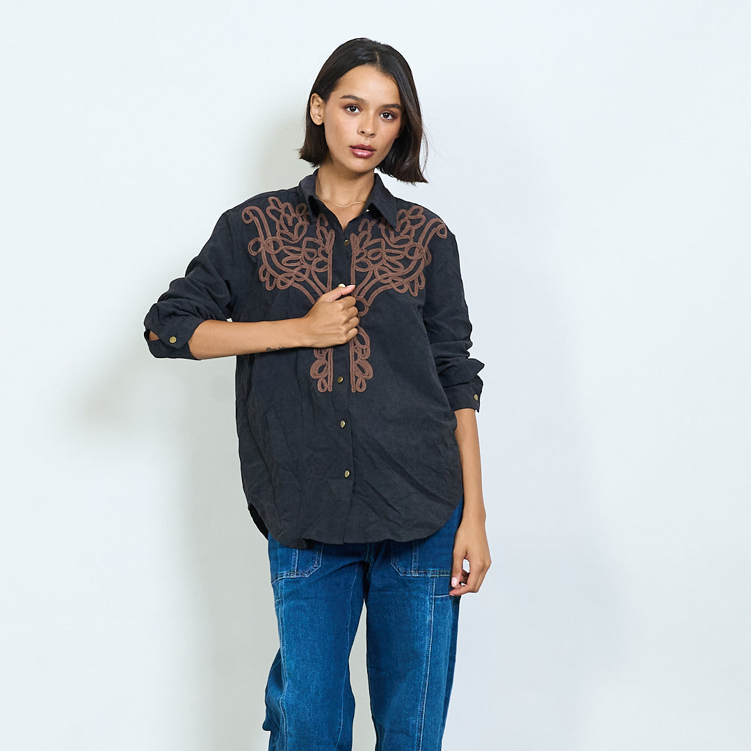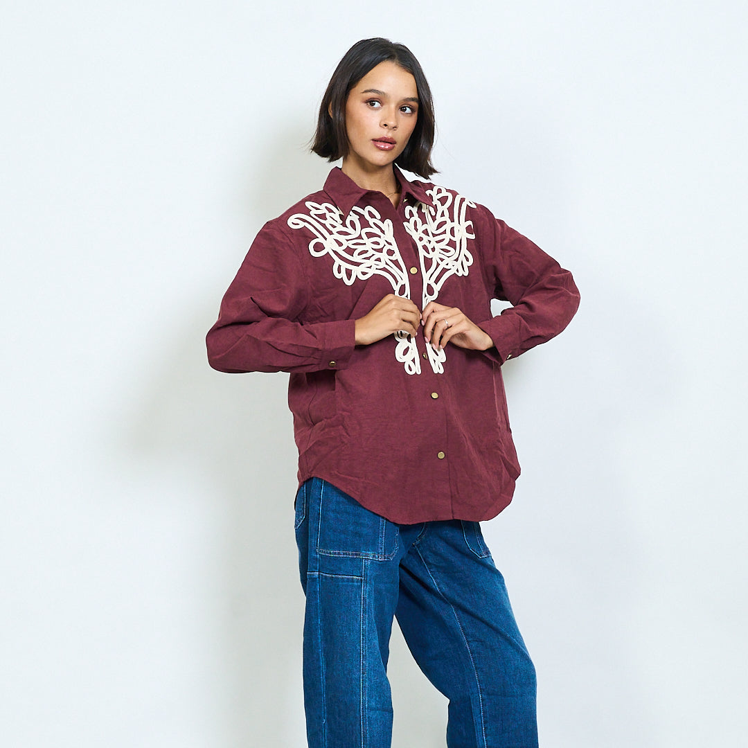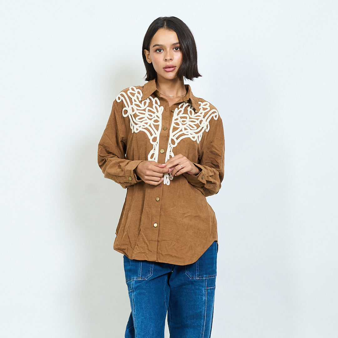 Long sleeve shirt with contrast embroidered yoke wholesale