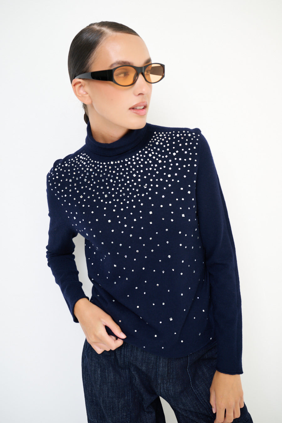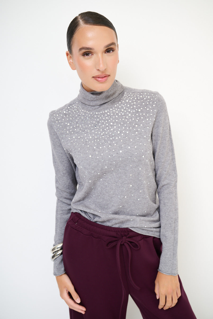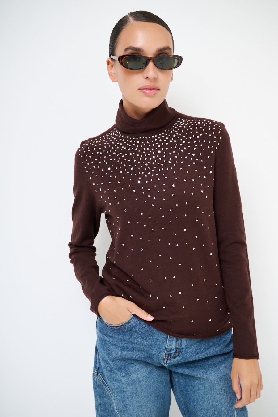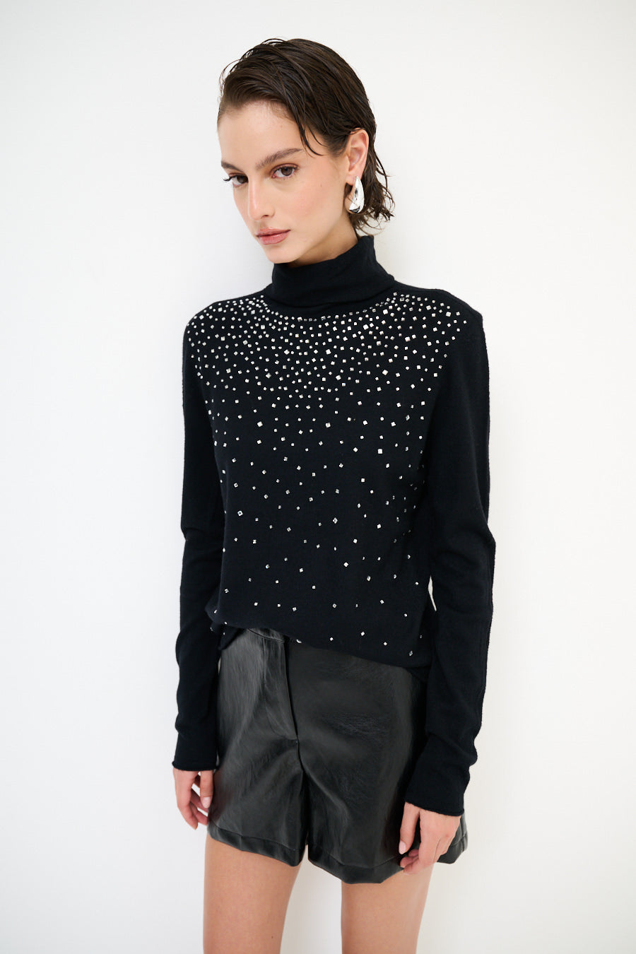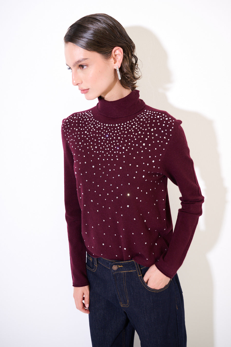 Turtleneck sweater with gradient rhinestone embellishment wholesale