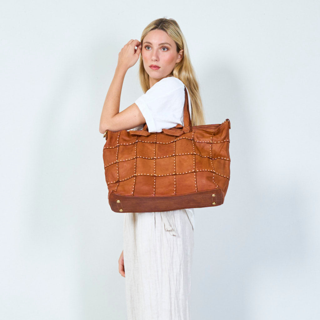 - تصميم أنيق من الجلد المرقع مع لمسات مرصعة