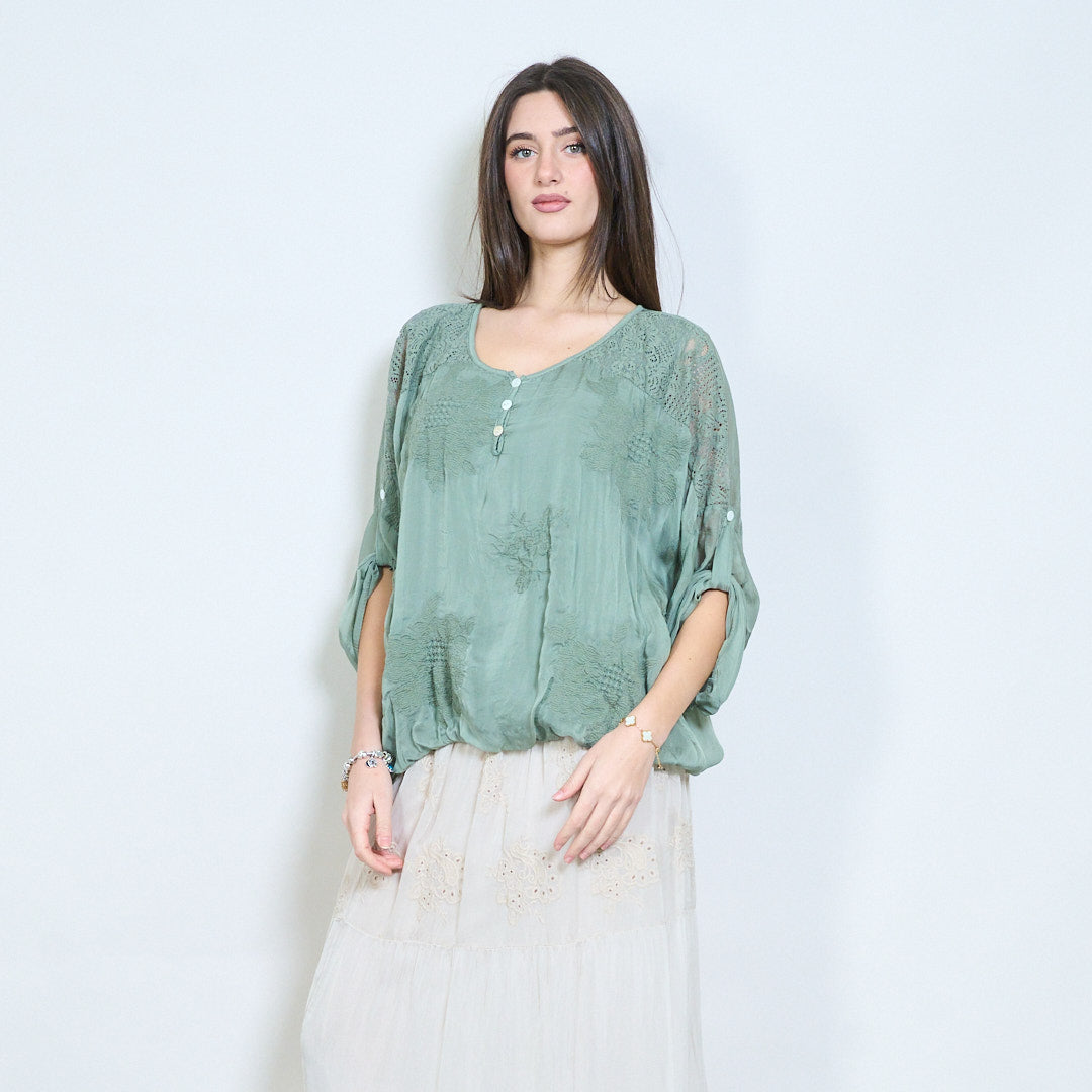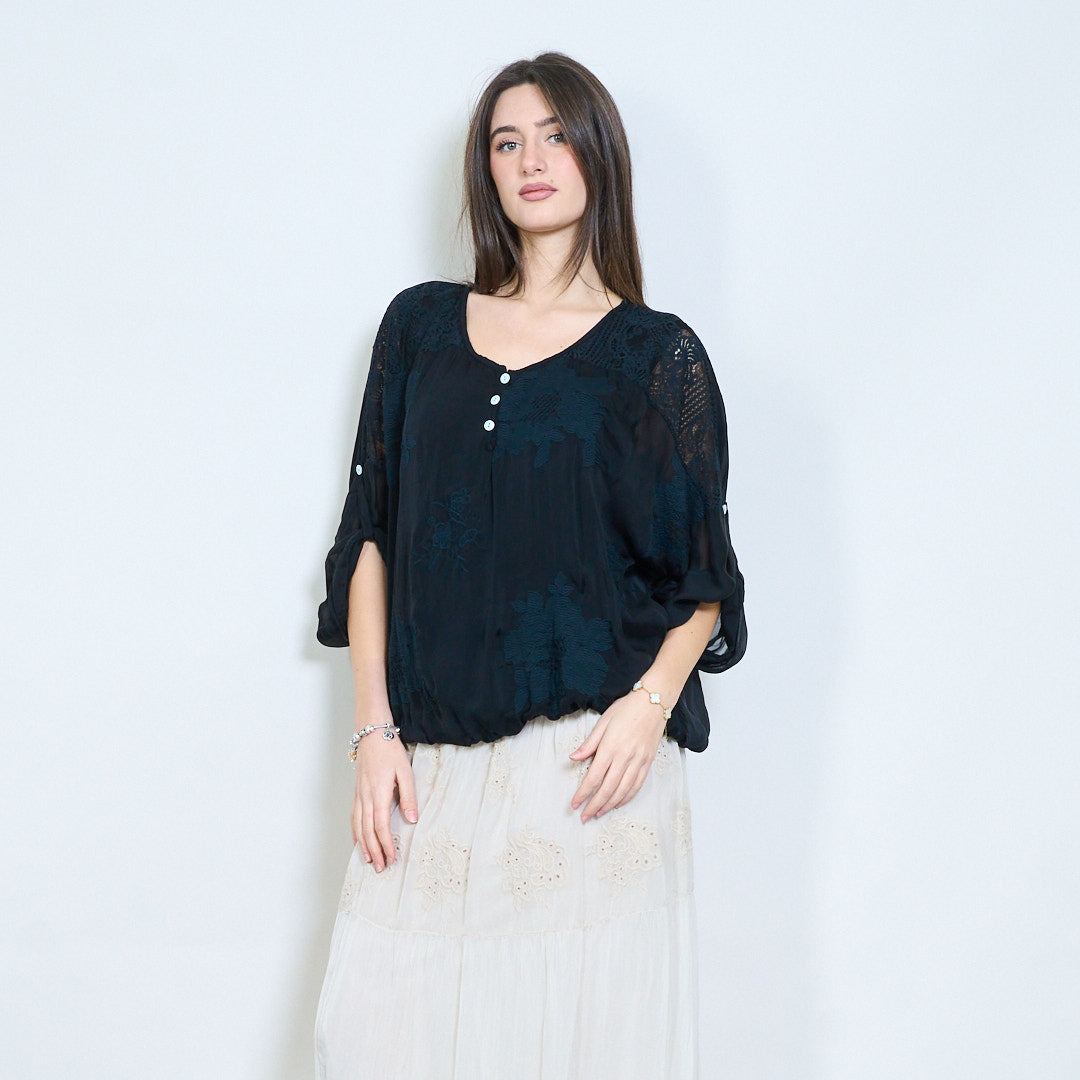 بلوزة مطرزة بأزرار من الدانتيل بأكمام طويلة للبيع بالجملة