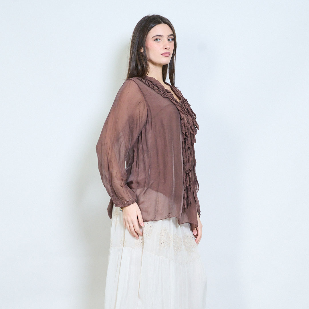 تدفق تكدرت الخامس العنق شير بلوزة طويلة الأكمام بالجملة