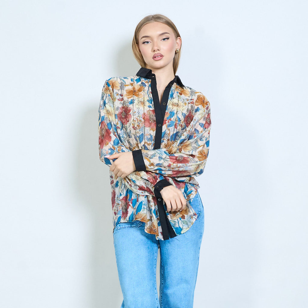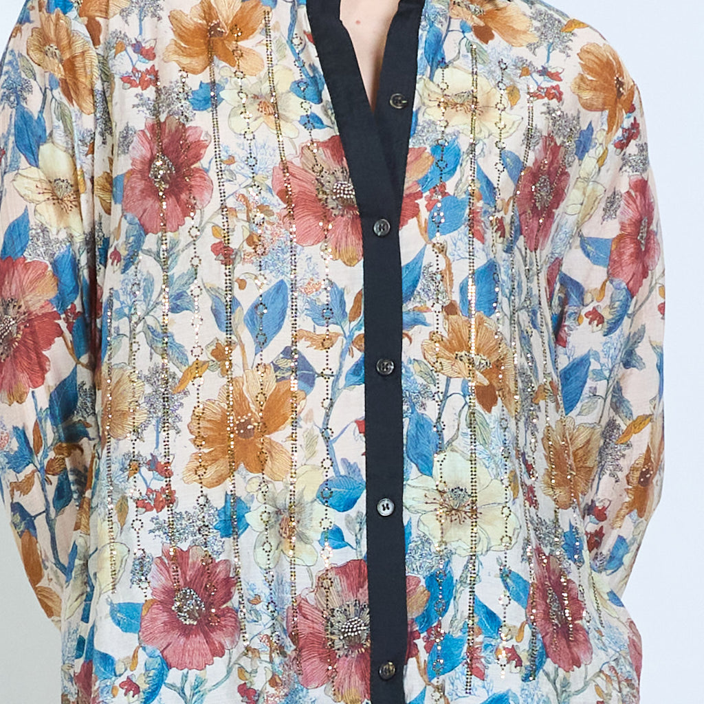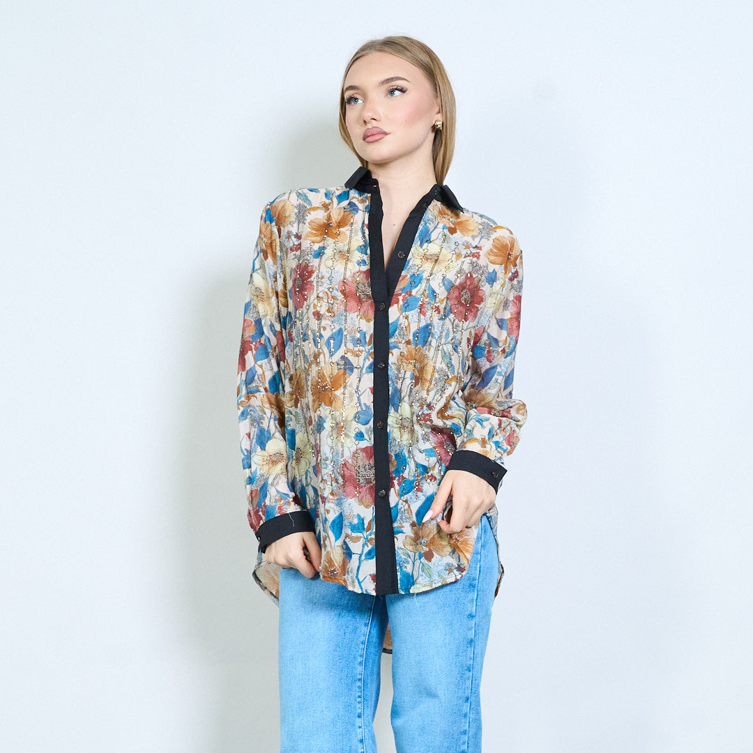 بلوزة بأزرار أمامية مزخرفة برسومات حديقة عتيقة مزهرة للبيع بالجملة