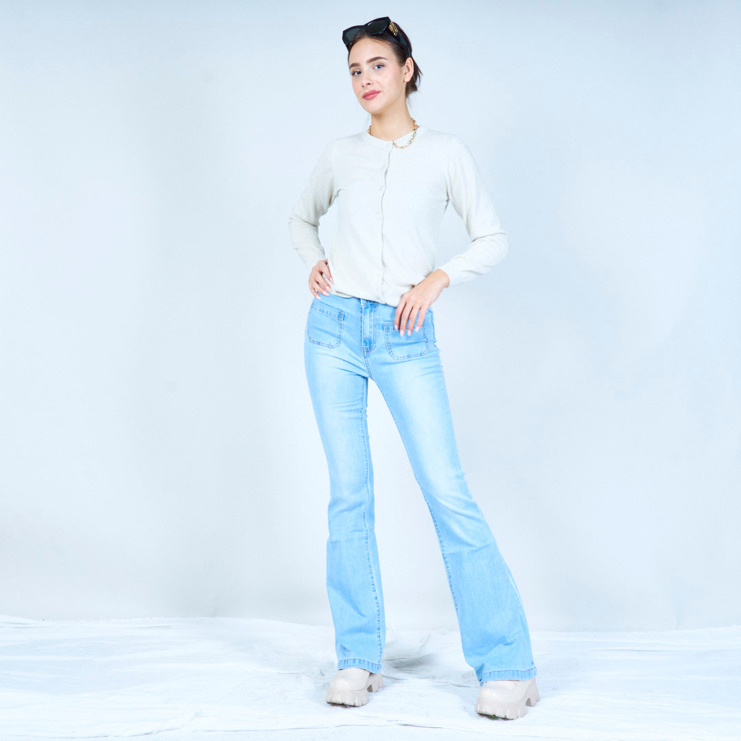 جينز واسع مستوحى من الطراز العتيق مع جيوب أمامية بالجملة