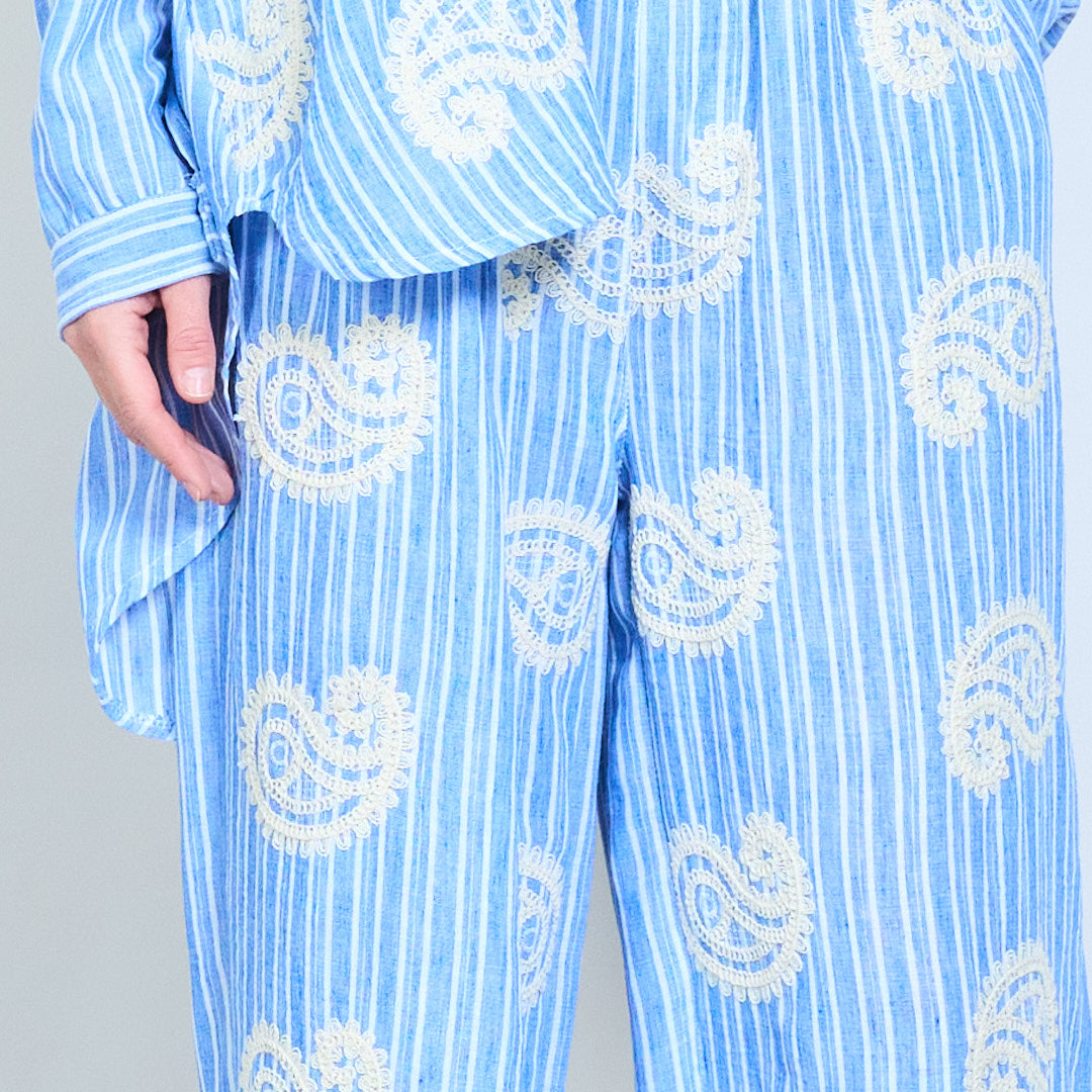 بنطلون واسع الساق مطرز بخصر مطاطي ومقاس مريح بالجملة