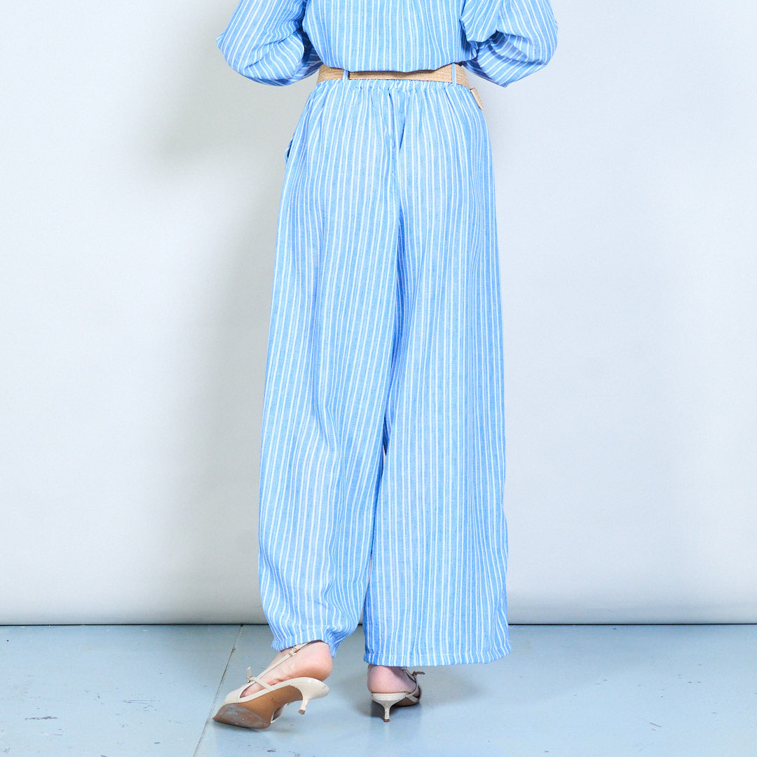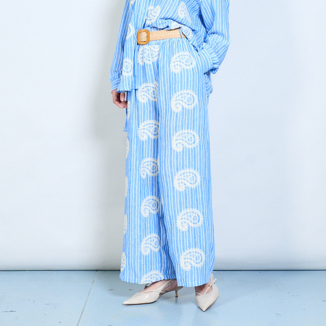 - بنطال بأرجل واسعة مصمم بنمط مخطط بالكامل