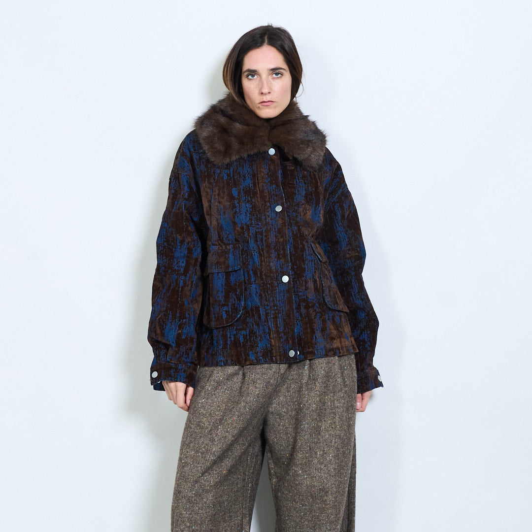 معطف قصير مزخرف مع طوق الفراء فو وإغلاق الزر بالجملة