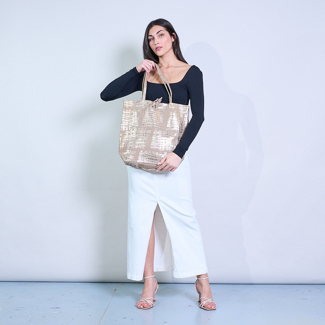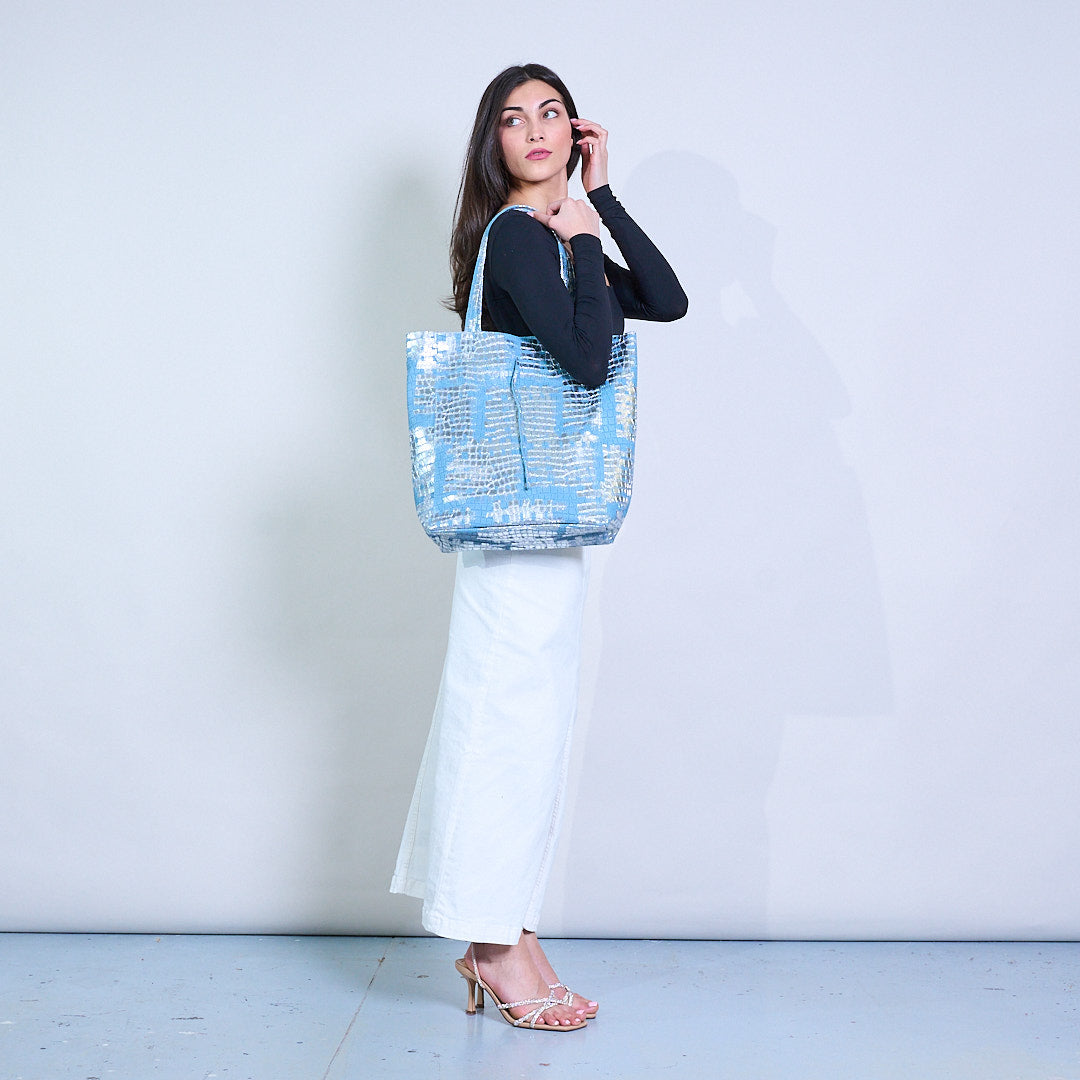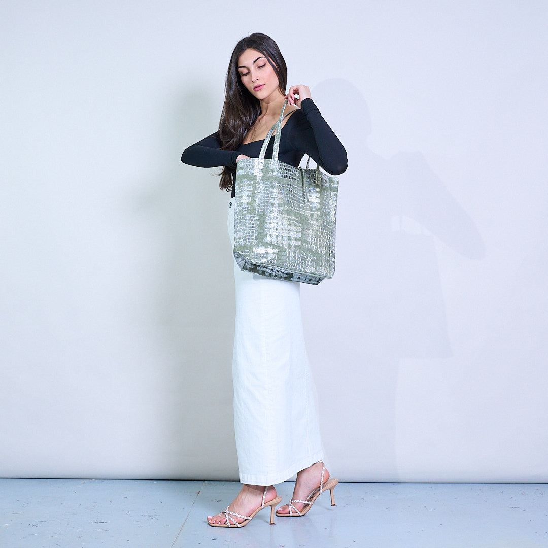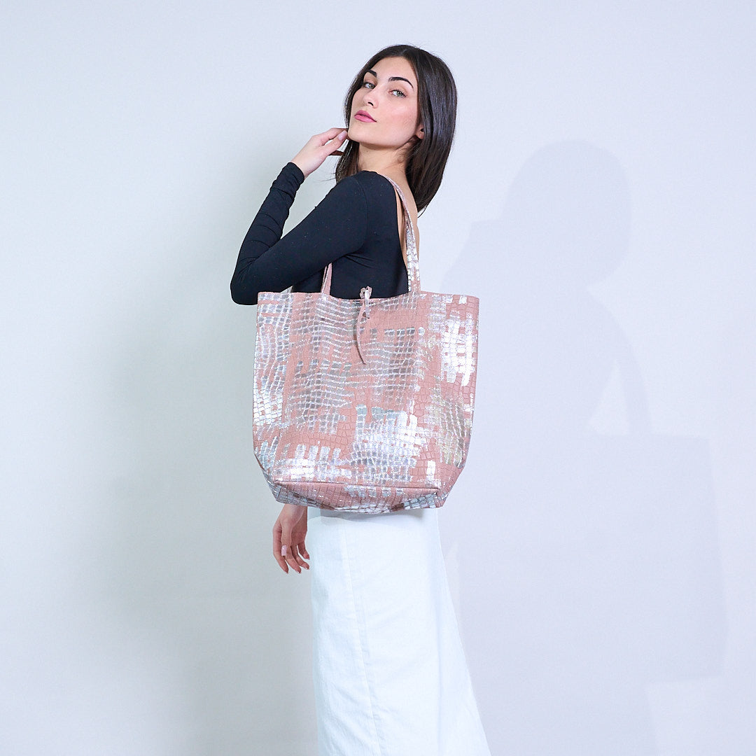 - مصنوع من الجلد المتميز مع لمسة من التمساح الأنيق والمعان المعدني الجريء