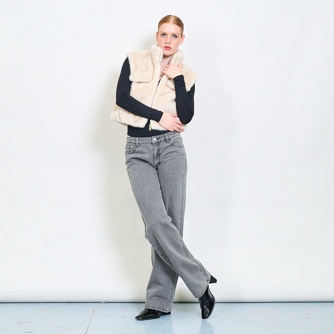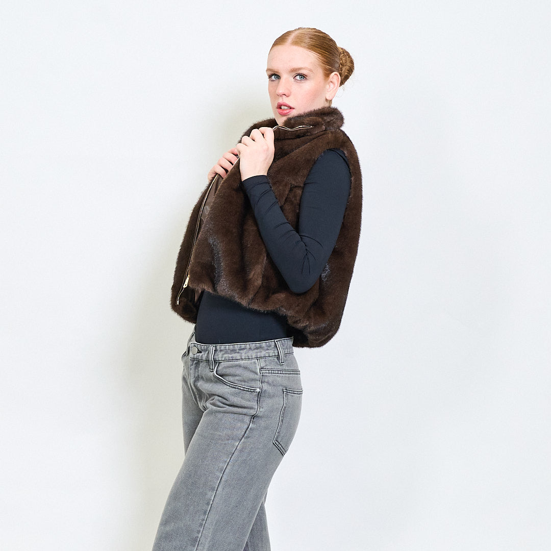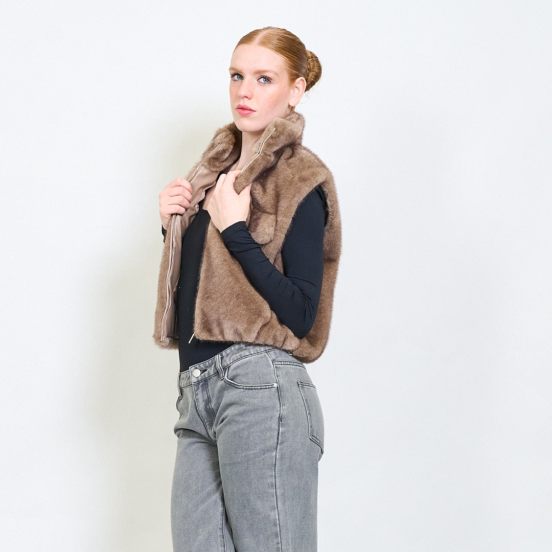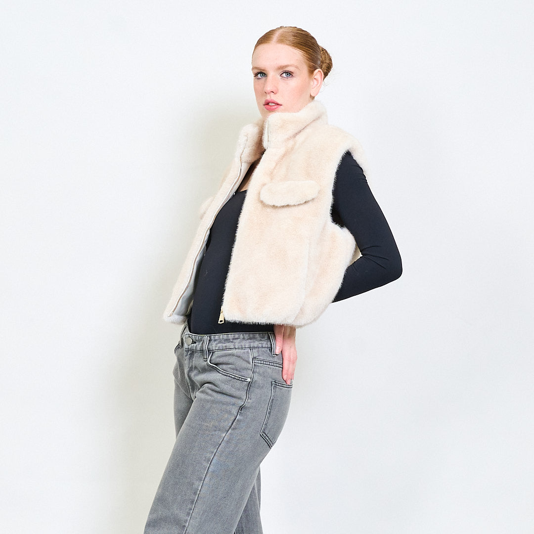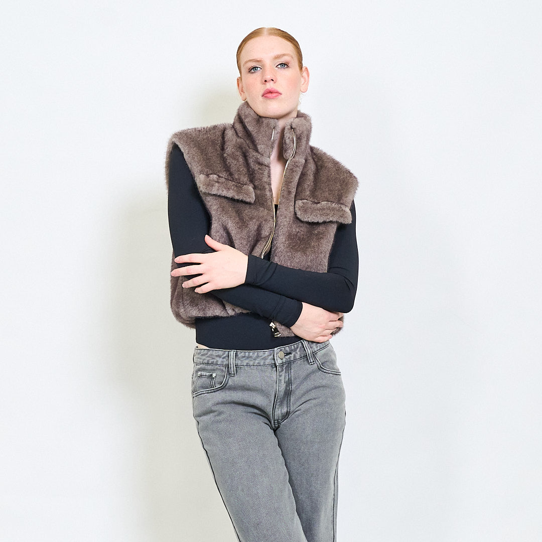 سترة فرو فو عالية الياقات مع جيوب رفرف الجملة