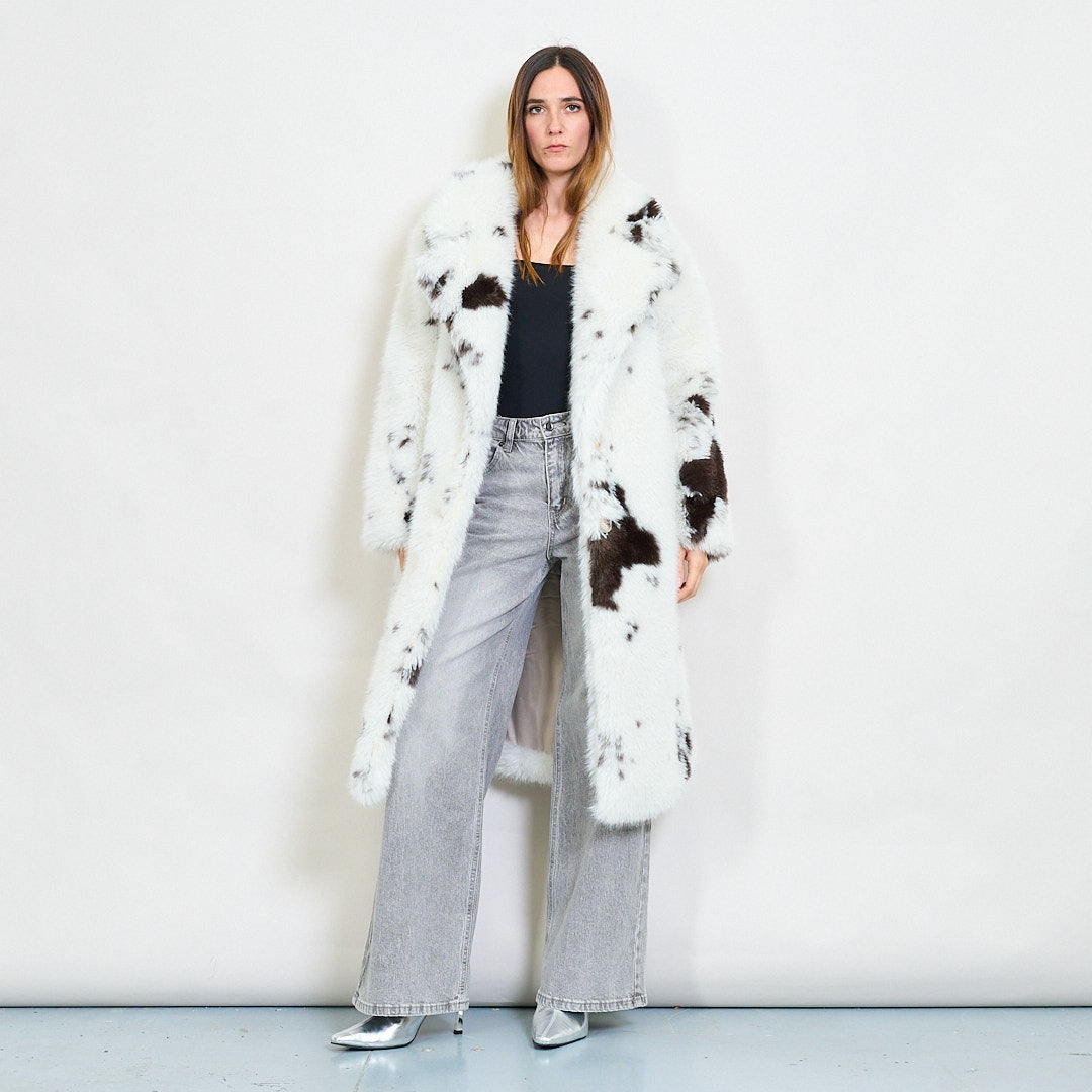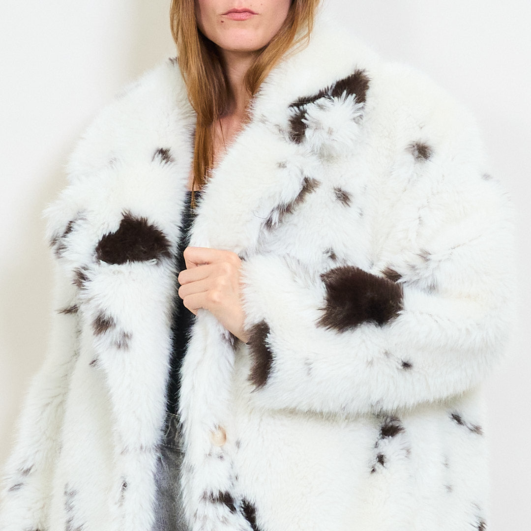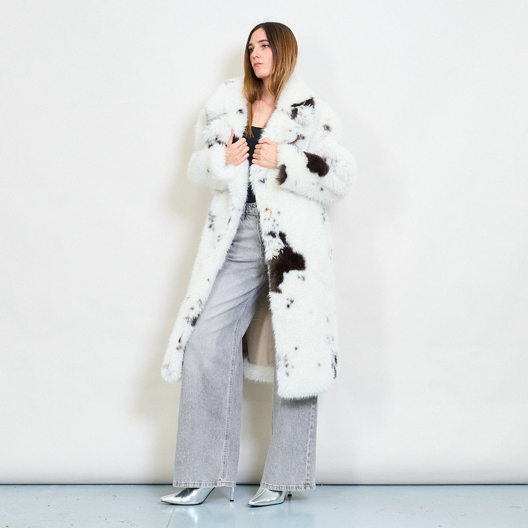 - فراء فو ناعم مع نمط بقعة غامق غامق على قاعدة الضوء