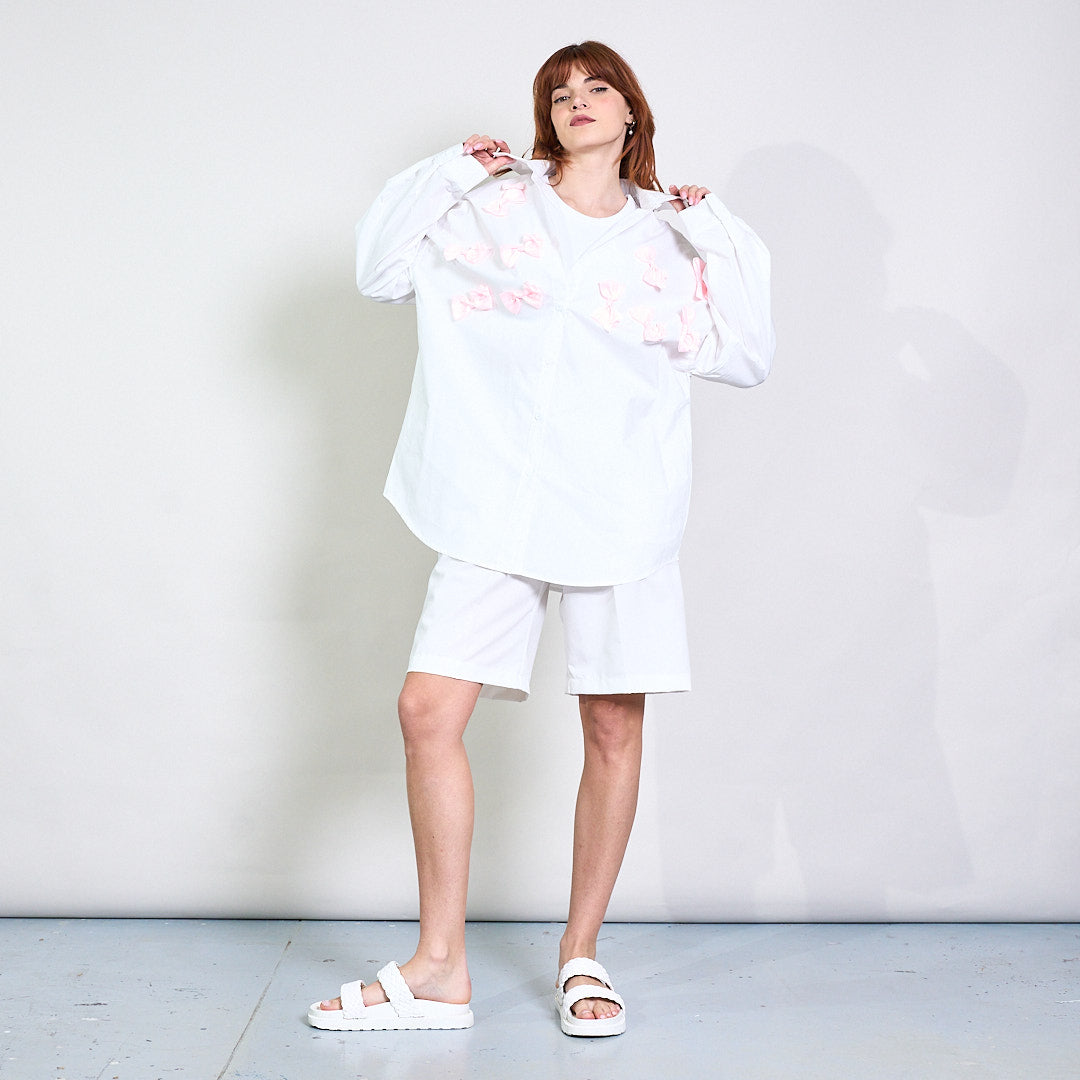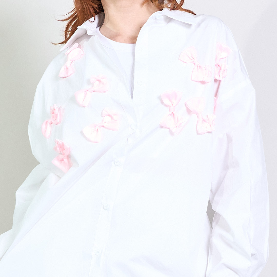 3D Pink Bow thediqué قميص بوبلين كبير الحجم