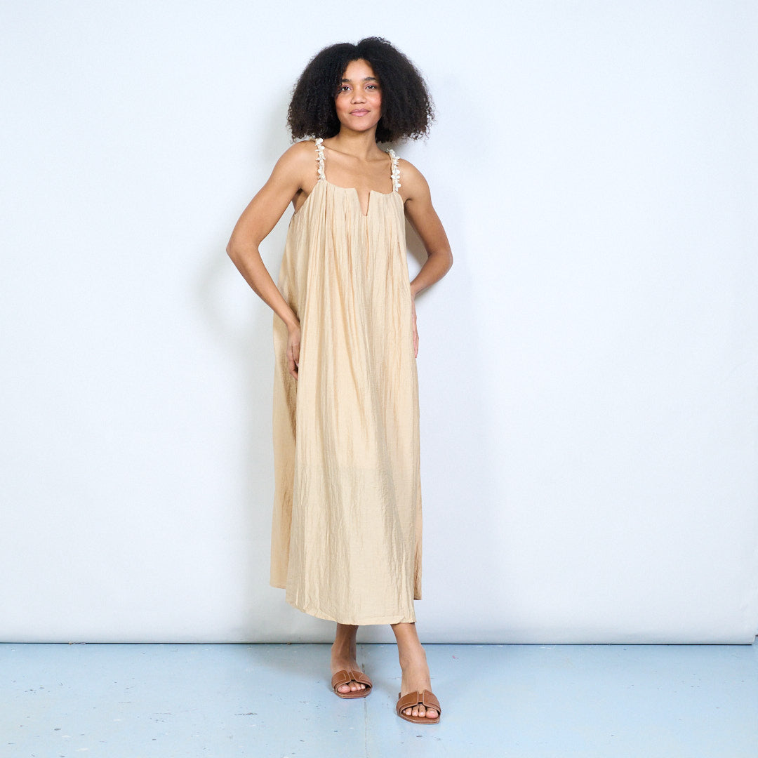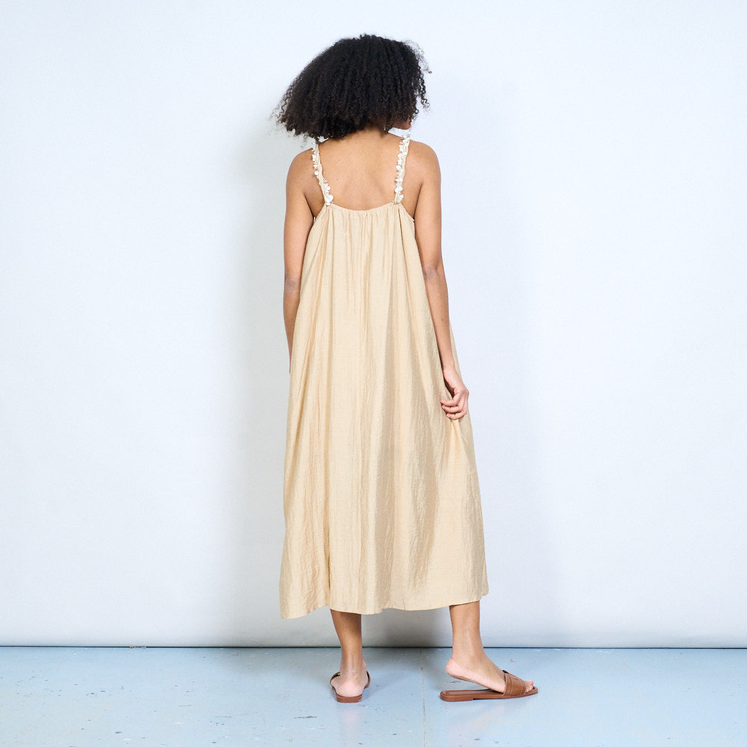 فستان ماكسي فضفاض بحزام مطرز بالجملة