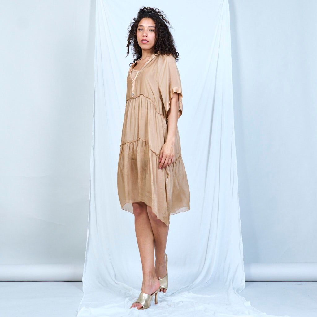 فستان تونيك من الشيفون الحريري متعدد الطبقات للبيع بالجملة