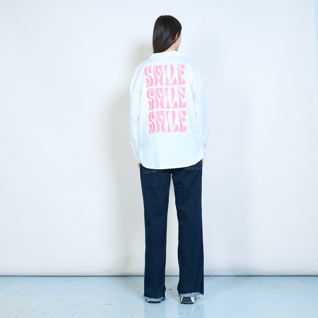 ابتسامة شعار الطباعة استرخاء زر أسفل قميص بالجملة