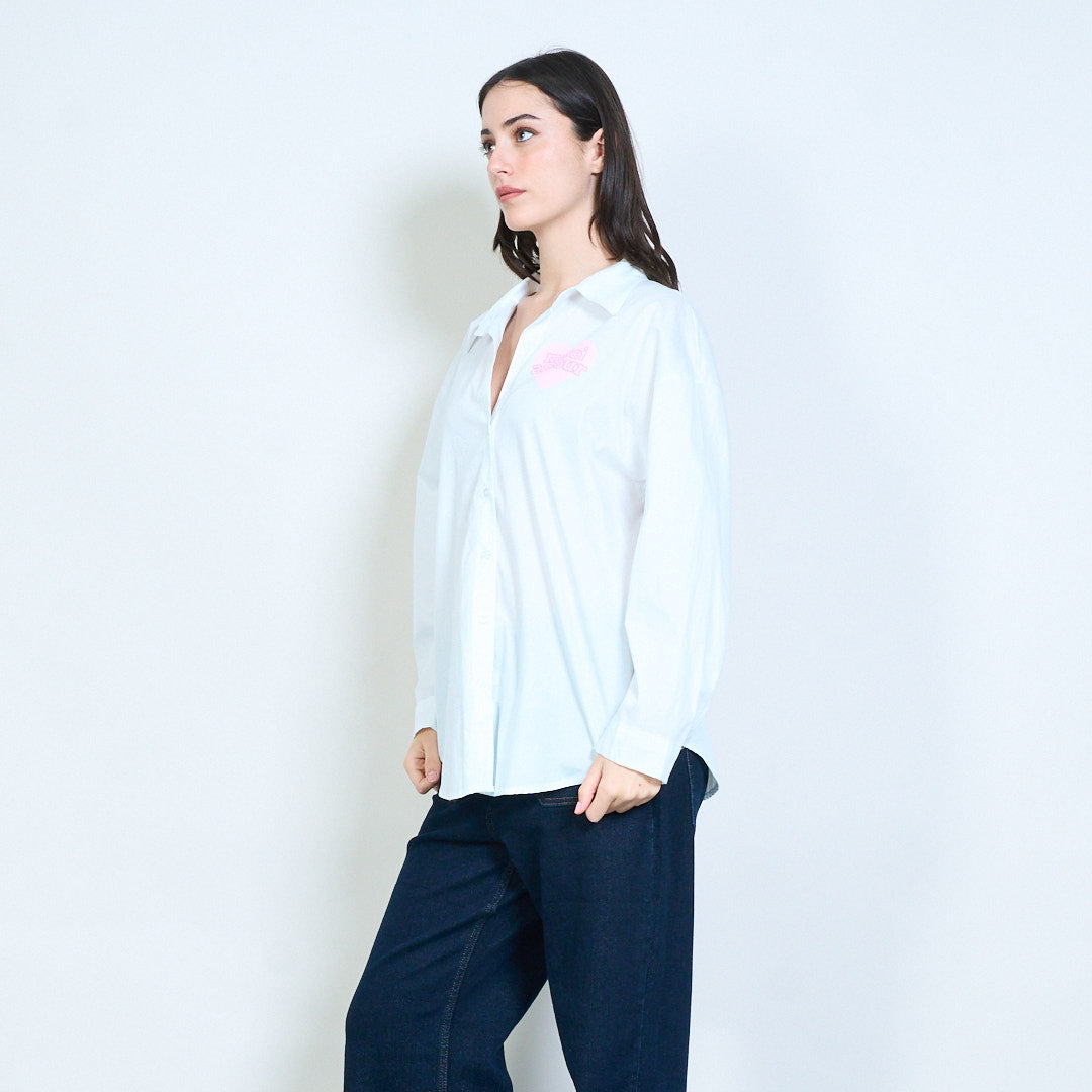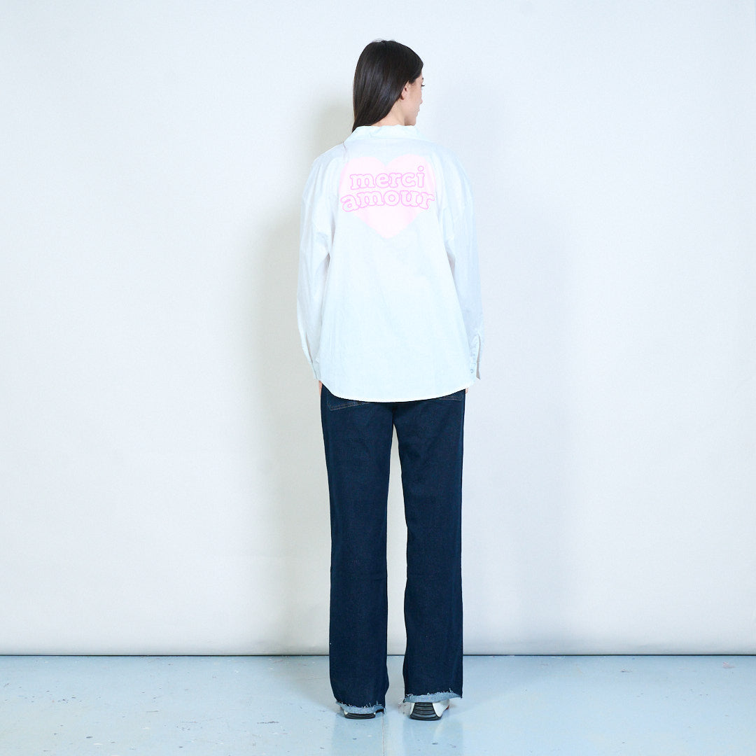قميص Merci amour مطبوع عليه قلب بأزرار سفلية للبيع بالجملة