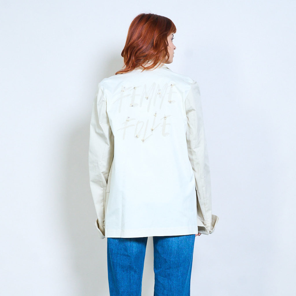 سترة "Femme Folle" مزينة باللؤلؤ ومُصممة بطباعة خلفية للبيع بالجملة