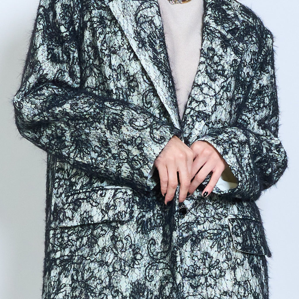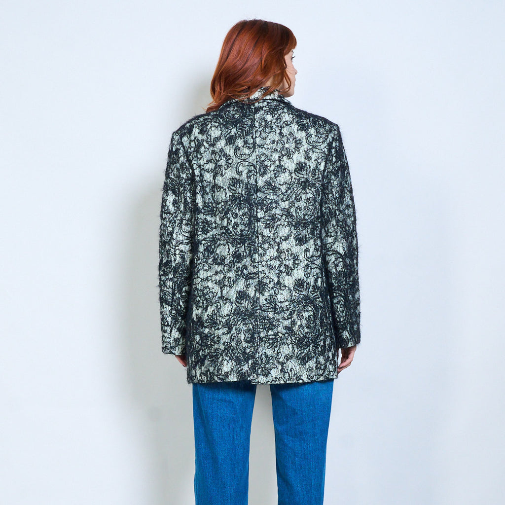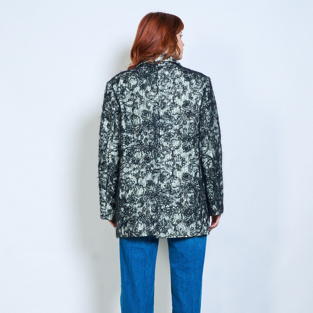 - سترة أنيقة مصممة بنمط نسيجي مستوحى من الدانتيل