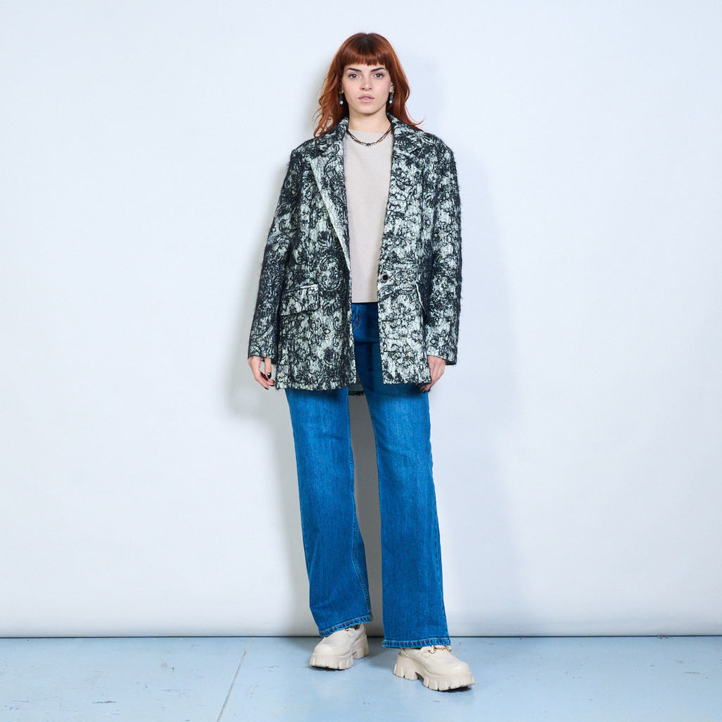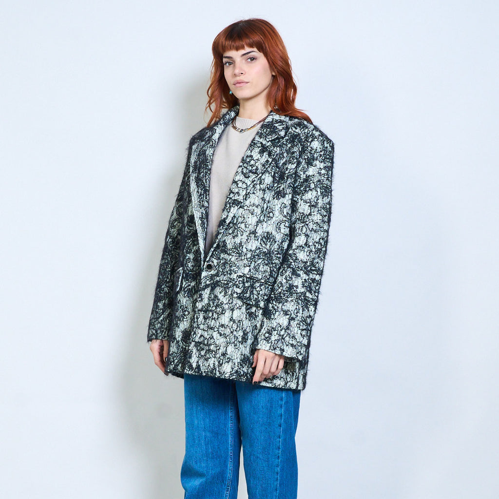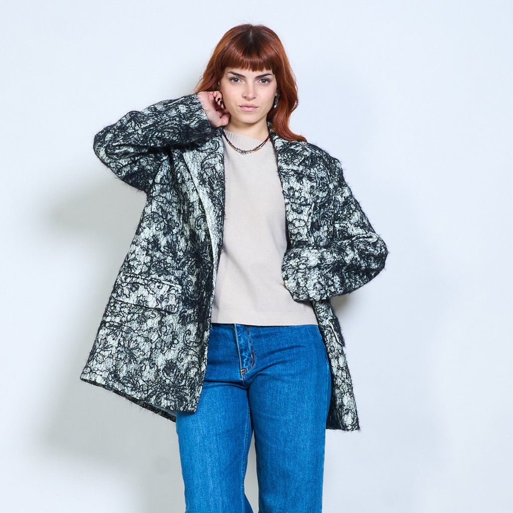 - سترة أنيقة مصممة بنمط نسيجي مستوحى من الدانتيل